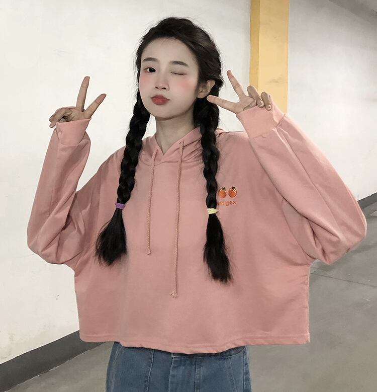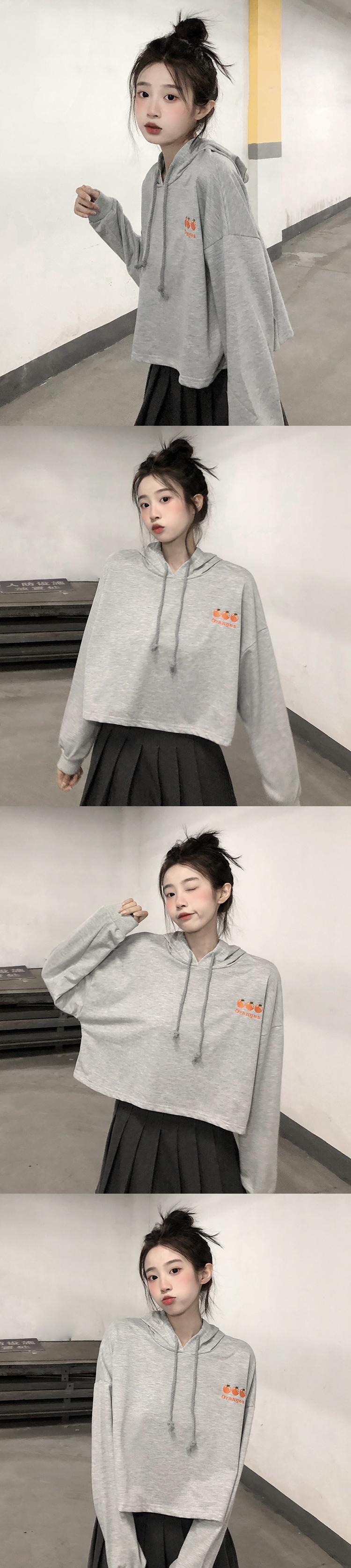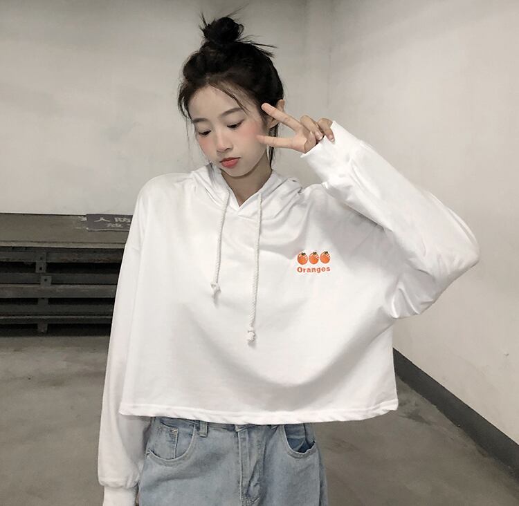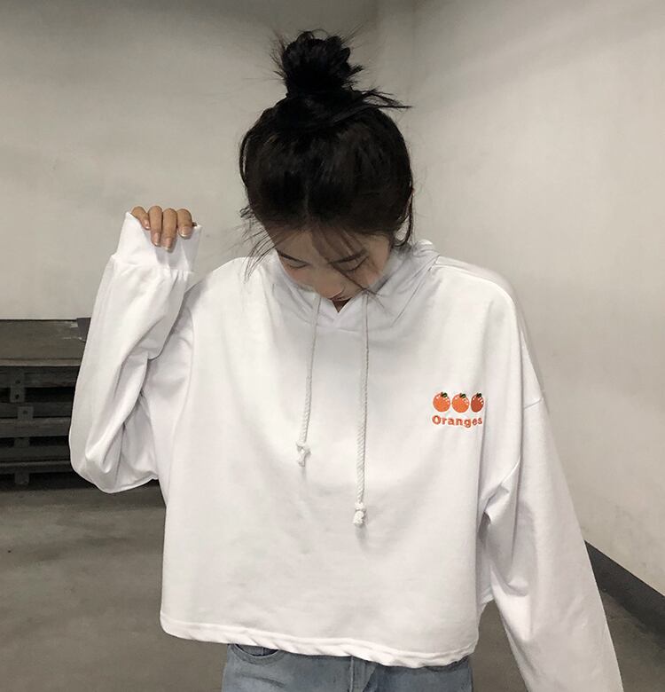 ショートフードセーター レディース秋物韓国ファッショントレンド刺繍ホワイトルーズ薄手トップス コート ロング オータム スタイル 長袖 Studios20918842907 | pLegLad Studios