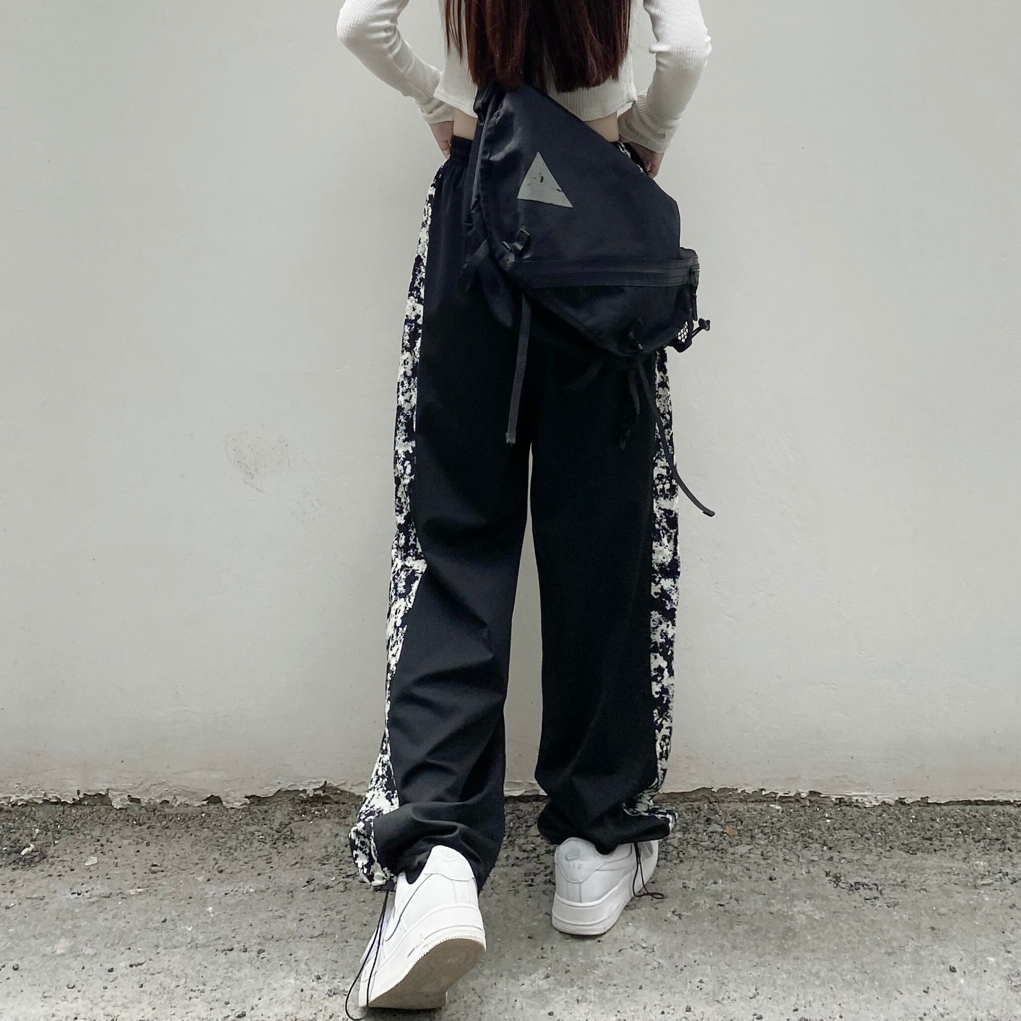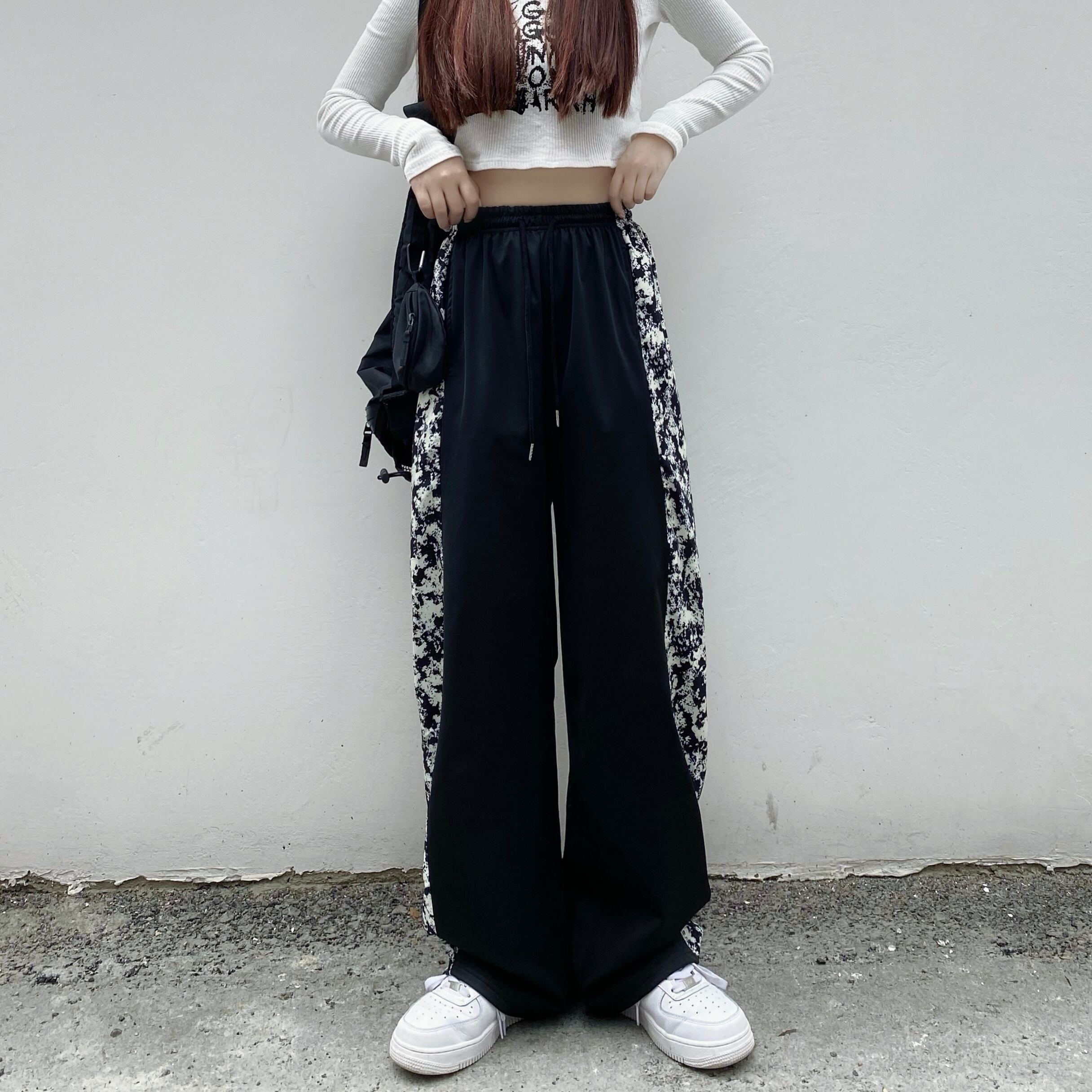 カジュアルパンツ レディース夏服韓国ファッショントレンドハイウェストウェストサイドプリントブラックルーズ薄手 ストリート 夏物 スタイル ウエスト Studios85668491669 | pLegLad Studios