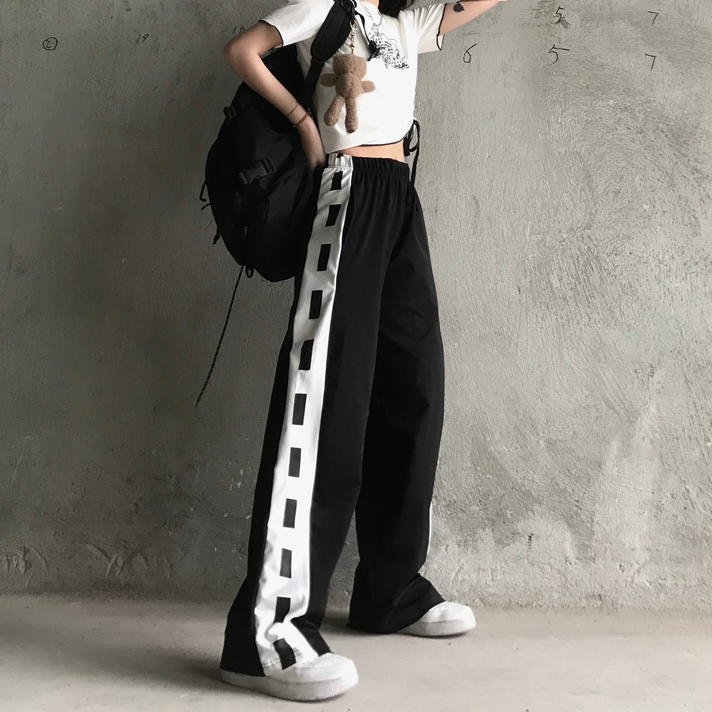 ブラックカジュアルパンツ 夏服スタイル韓国ファッションカラーハイウェスト 夏物 ウエスト コーデ モノクロ Studio71276430942