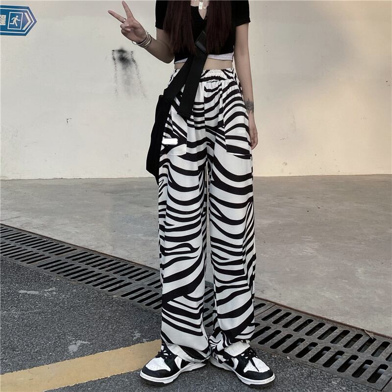 パターンカジュアルパンツ 夏服韓国ファッション 夏物 スタイル コーデ モノクロ Studio24923906277