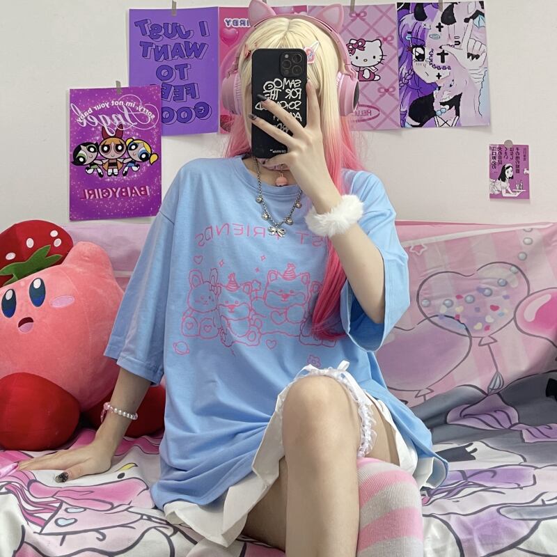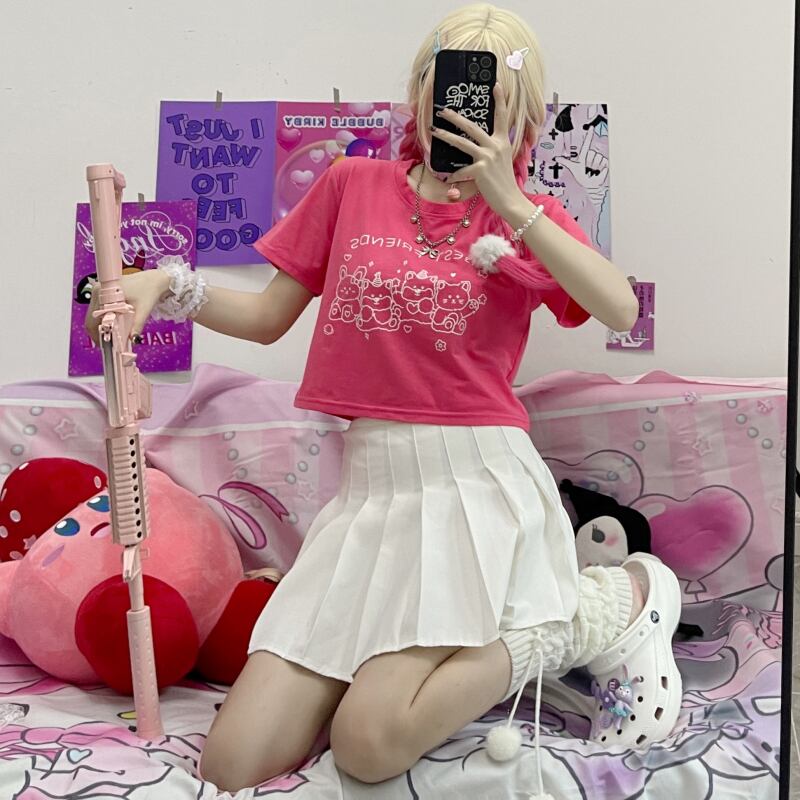 ショートトップス レディース夏服韓国ファッショントレンドスタイルルーズホワイトラウンドネックTシャツ 大人ガーリー スウィート キュート カジュアル 原宿 夏物 Oネック Studios34535069803 | pLegLad Studios