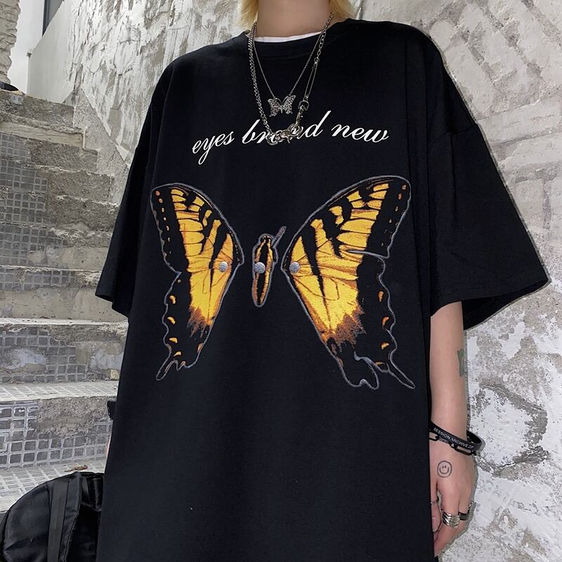 夏服韓国ファッショントレンドスタイルスタンダードラウンドネックButterflyデザイン プリント柄Tシャツトップス メンズレディース レトロ ストリート 原宿 夏物 Oネック Studios94167974516 | pLegLad Studios
