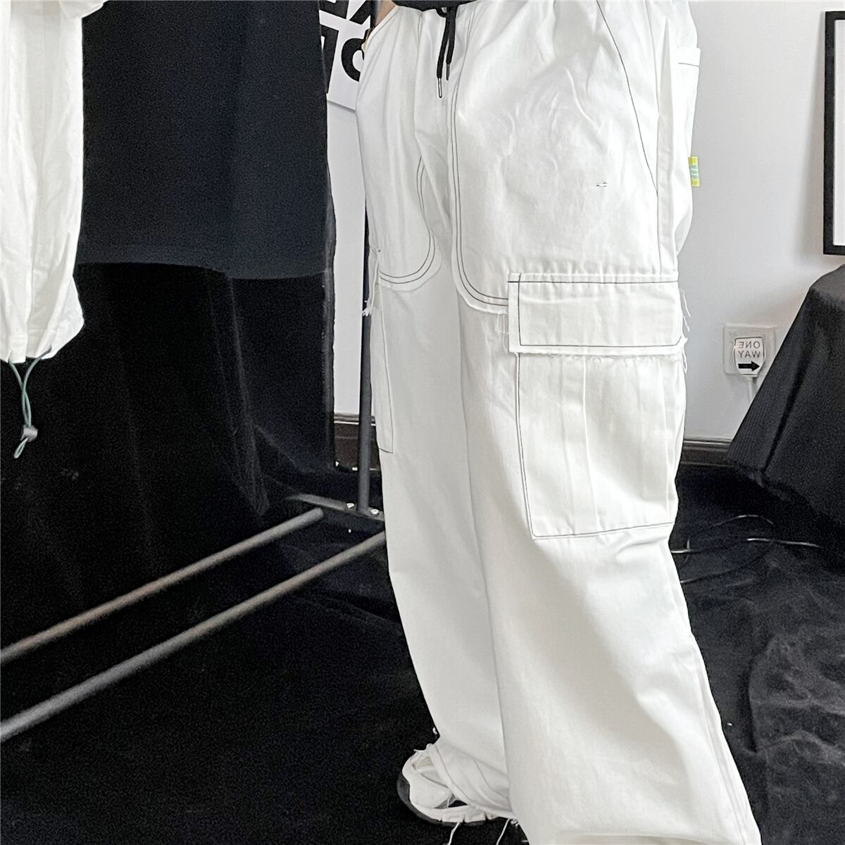 ポケットレディース夏服トレンドホワイトカジュアルパンツ 夏物 ボーイズ コーデ モノクロ Studio9452919798