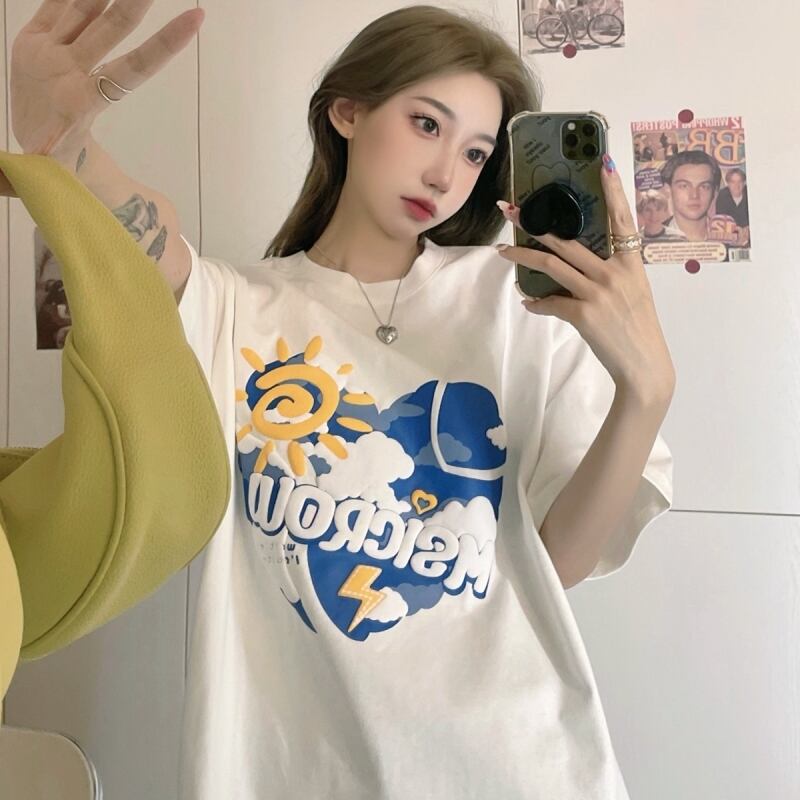 夏服Tシャツレディース韓国ファッショントレンドスタイルプリントルーズトップス 大人ガーリー スウィート キュート カジュアル 夏物 ボーイズ コーデ モノクロ Studio91401661401