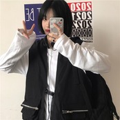 スタンダードダーク韓国ファッションブラウス レディース秋物トレンドルーズ レトロ オータム ウエスト コーデ モノクロ Studio80661313750