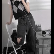 夏服韓国ファッショントレンドスタイルブラックグレージーンズ レディース 大人ガーリー スウィート キュート カジュアル 原宿 夏物 Studios20010788371 | pLegLad Studios
