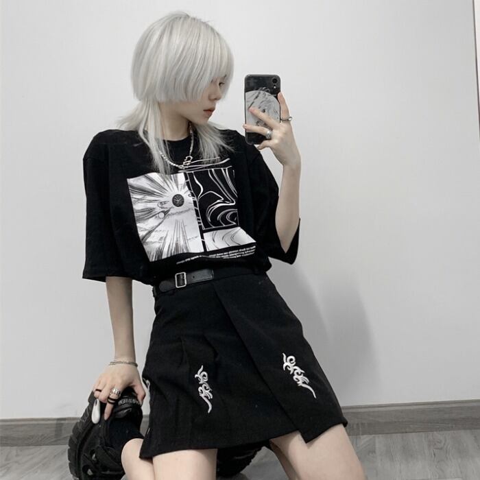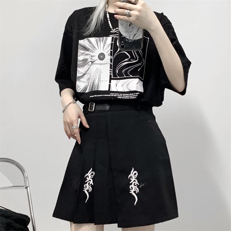 スカート 夏服韓国ファッショントレンドダーク刺繍ハイウェストウェストプリーツショート 夏物 スタイル ウエスト コーデ モノクロ Studio36030438935 | pLegLad Studios