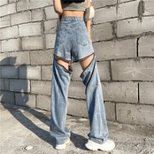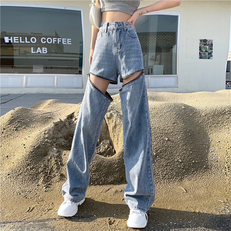 薄手ジーンズ レディース夏服スタイル韓国ファッションハイウェストウェストワイドレッグパンツ ルーズ 夏物 ワイドパンツ ウエスト コーデ モノクロ Studio79470808522