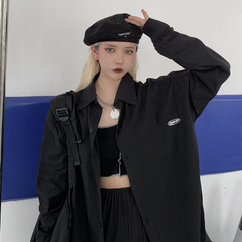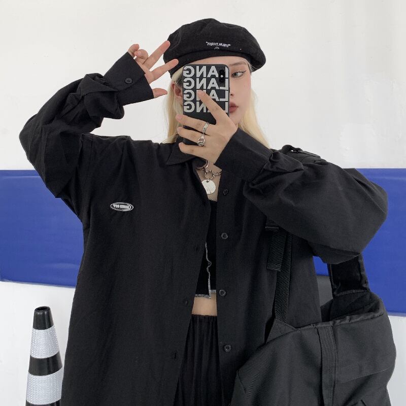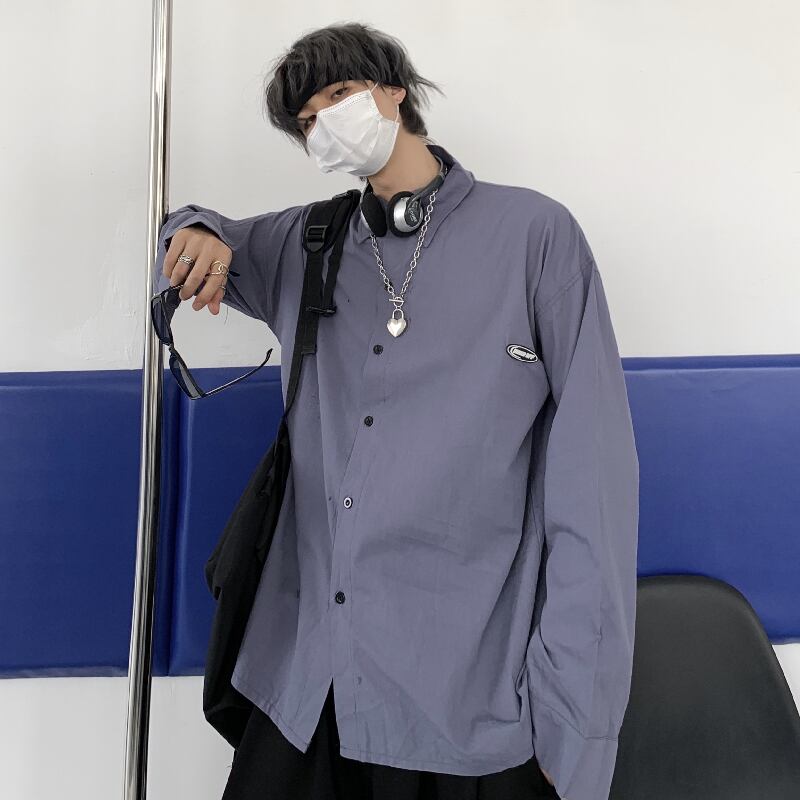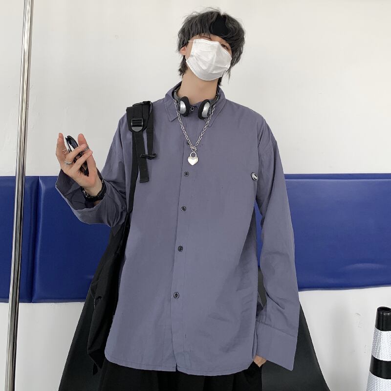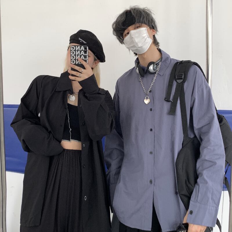秋物韓国ファッショントレンドスタイルスタンダードソリッド カラーカジュアルルーズシャツ メンズレディース ロング レトロ 原宿 オータム ソリッドカラー 長袖 Studios45597321323 | pLegLad Studios