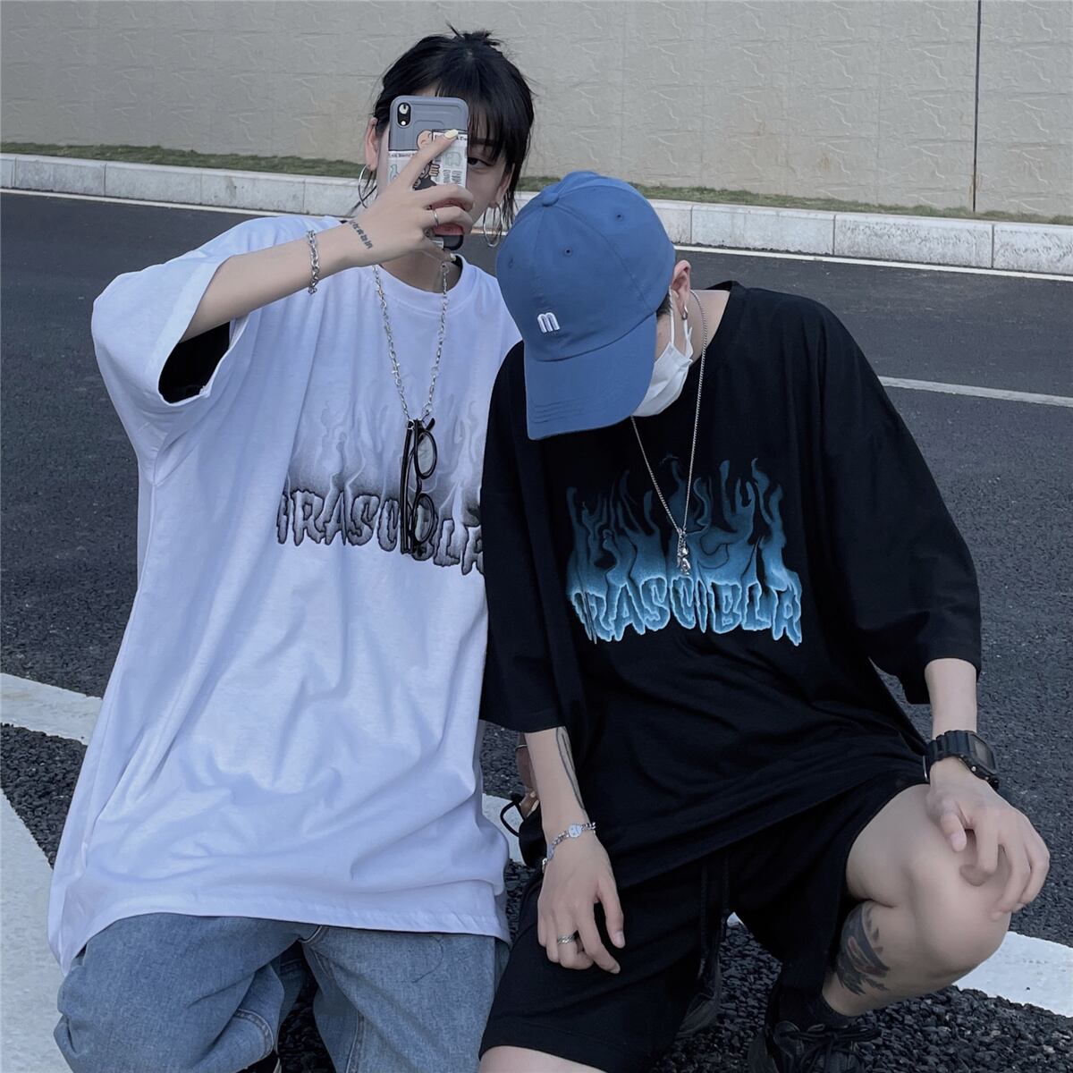 夏服韓国ファッショントレンドスタイルプリントルーズラウンドネック半袖スリーブTシャツメンズレディース ショート ハーフスリーブ ストリート 原宿 夏物 Oネック Studios29958746321 | pLegLad Studios
