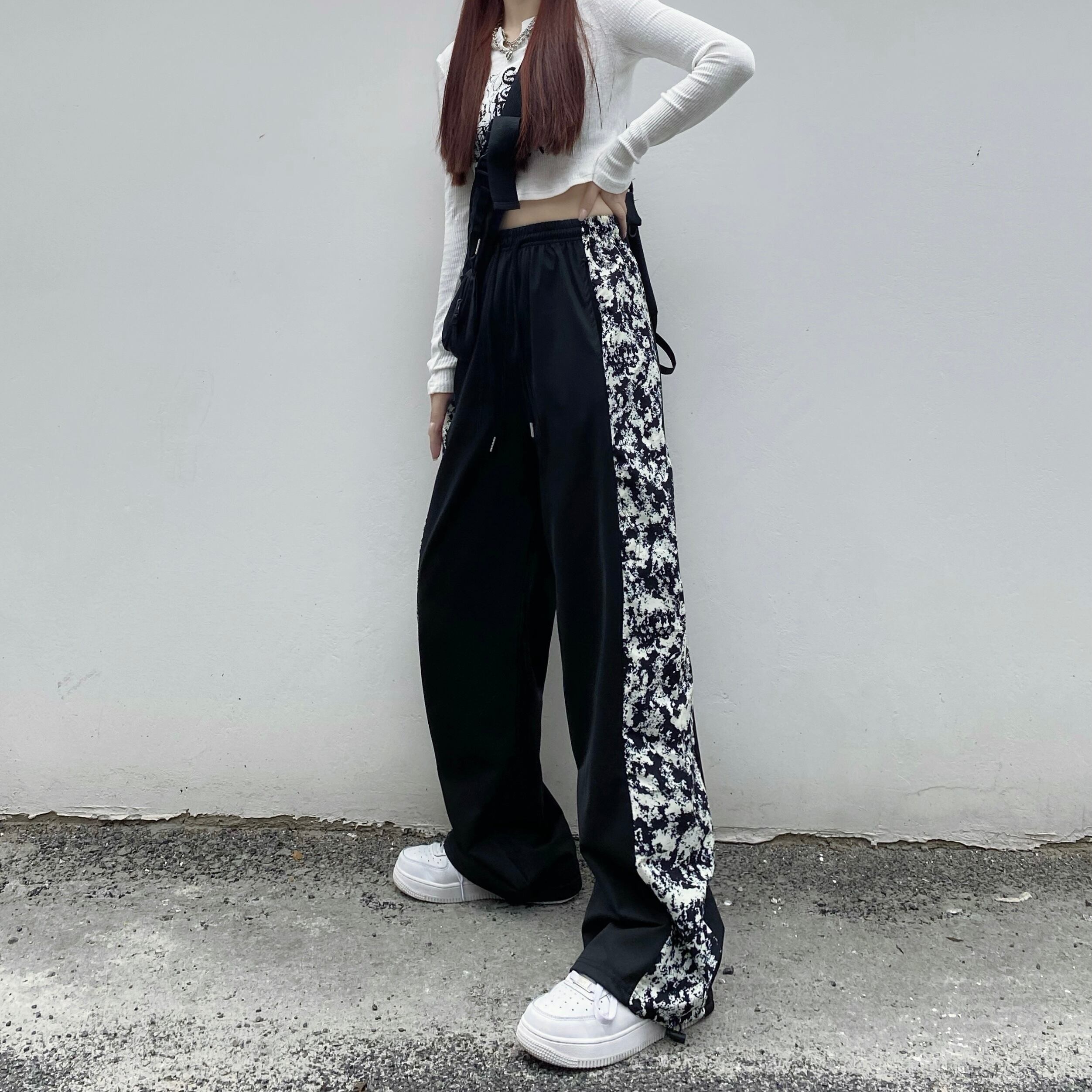 ハイウェストウェストルーズカジュアルレディース夏服パンツ 薄手ワイドレッグ 夏物 ワイドパンツ ステッチ ウエスト コーデ モノクロ Studio91598408132 | pLegLad Studios