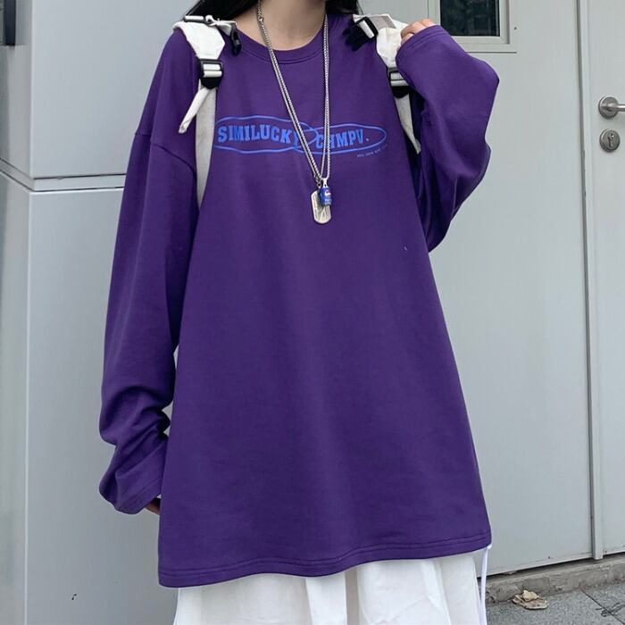 ゆったりシャツ トップス 秋物韓国ファッショントレンドスタイルプリントルーズカジュアルラウンドネック長袖スリーブTシャツ ロング 原宿 オータム Oネック Studios36456380292 | pLegLad Studios