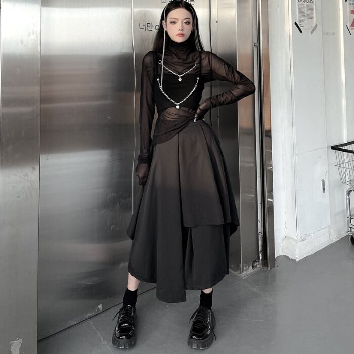 スカート レディース夏服韓国ファッショントレンドスタイルスタンダードハイウェストウェストAライン レトロ 夏物 ウエスト ミドル丈 Studios54531989210 | pLegLad Studios