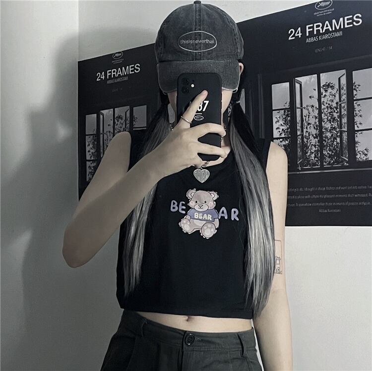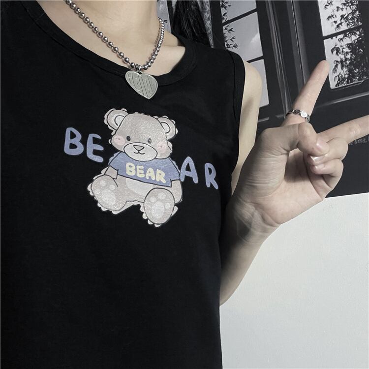 ゆったりレディース夏服韓国ファッショントレンドスタンダードプリント柄ノースリーブTシャツトップス レトロ ストリート 夏物 スタイル Studios4087547408 | pLegLad Studios