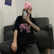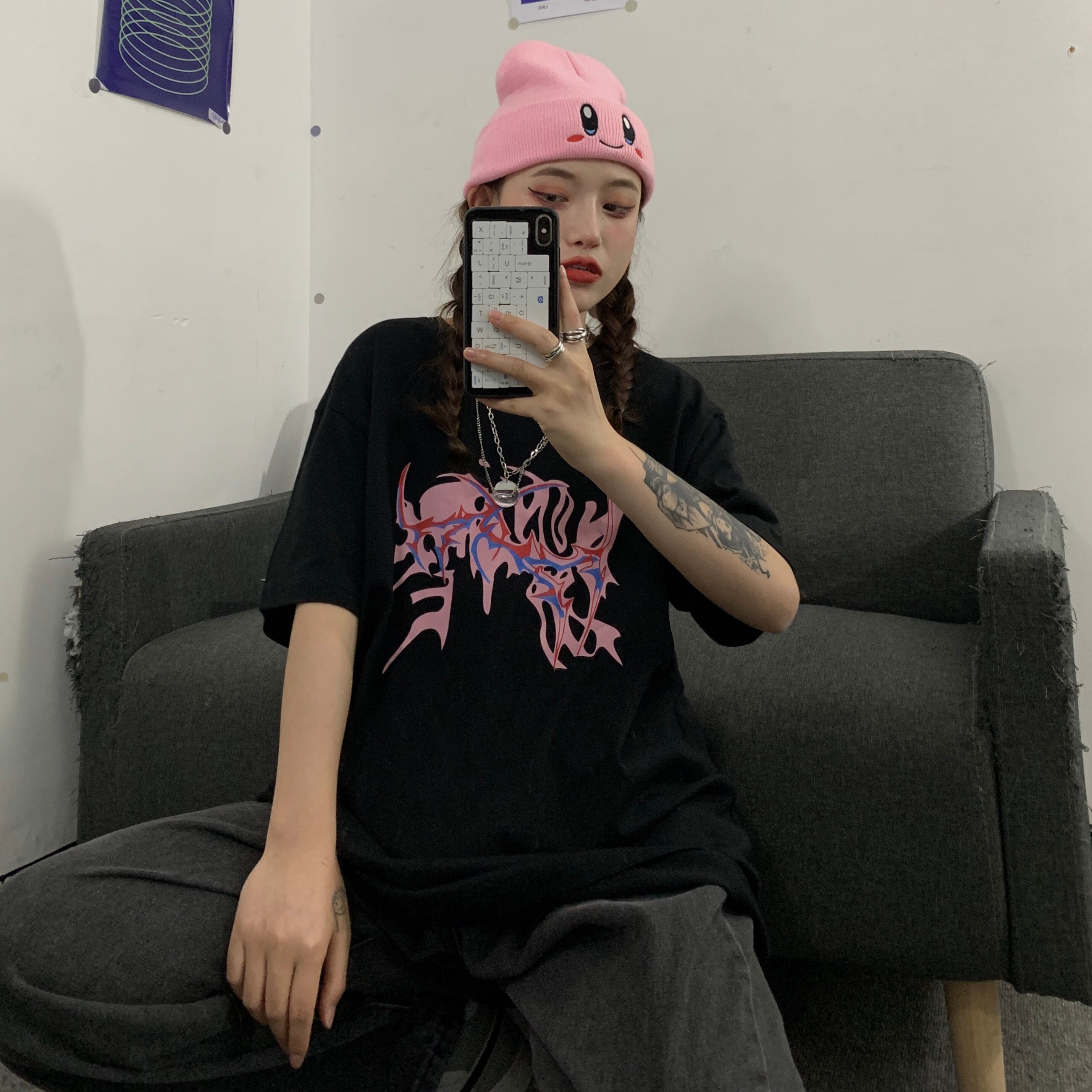 夏服韓国ファッショントレンドスタイルダークプリントカジュアルルーズラウンドネックTシャツメンズレディース ストリート 原宿 夏物 Oネック Studios8084554864 | pLegLad Studios