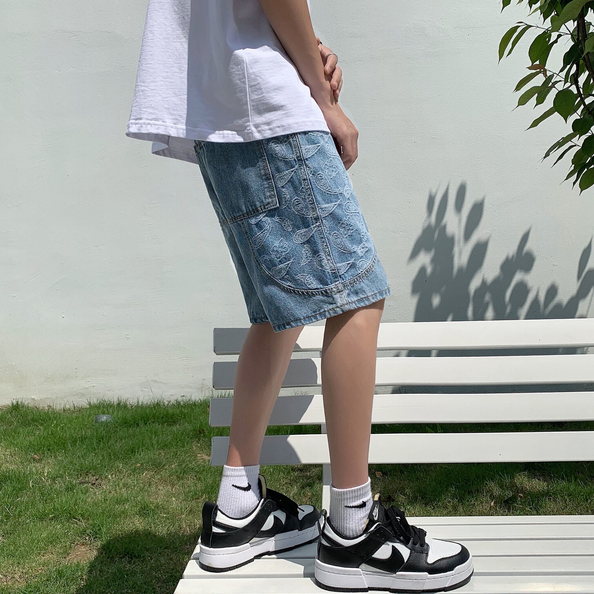 Flowerデザイン ジーンズ レディース夏服スタイル韓国ファッションルーズショーツ ワイドレッグパンツ 夏物 ワイドパンツ フラワーデザイン ボーイズ コーデ モノクロ Studio64474748954 | pLegLad Studios