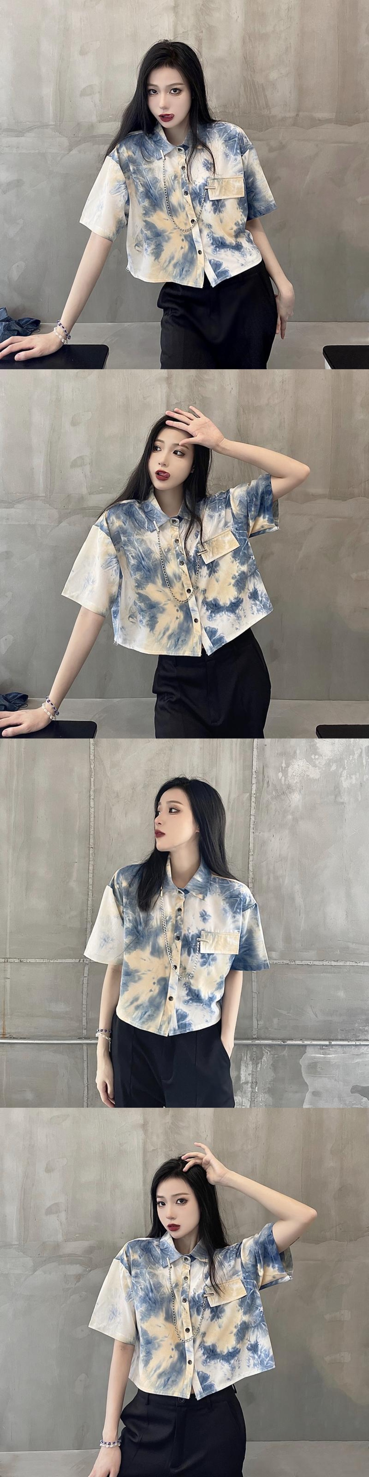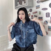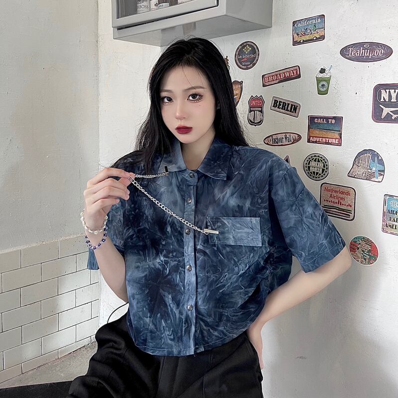 夏服韓国ファッショントレンドスタンダードチェーン カジュアルルーズショート半袖スリーブシャツ レディース レトロ ハーフスリーブ ストリート 夏物 スタイル Studios39919169992 | pLegLad Studios