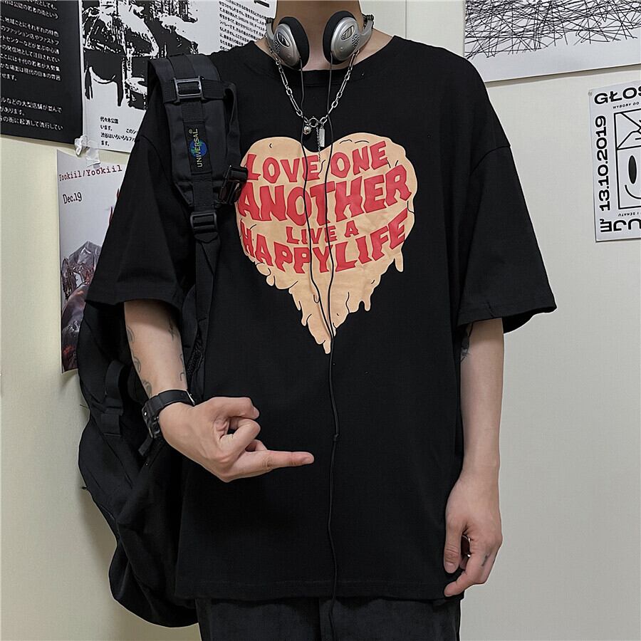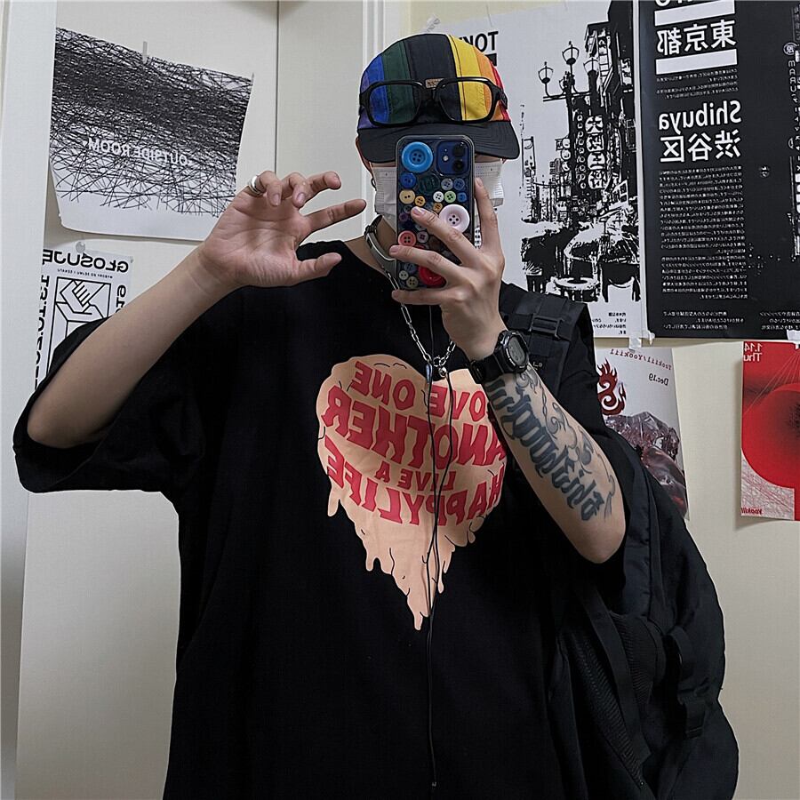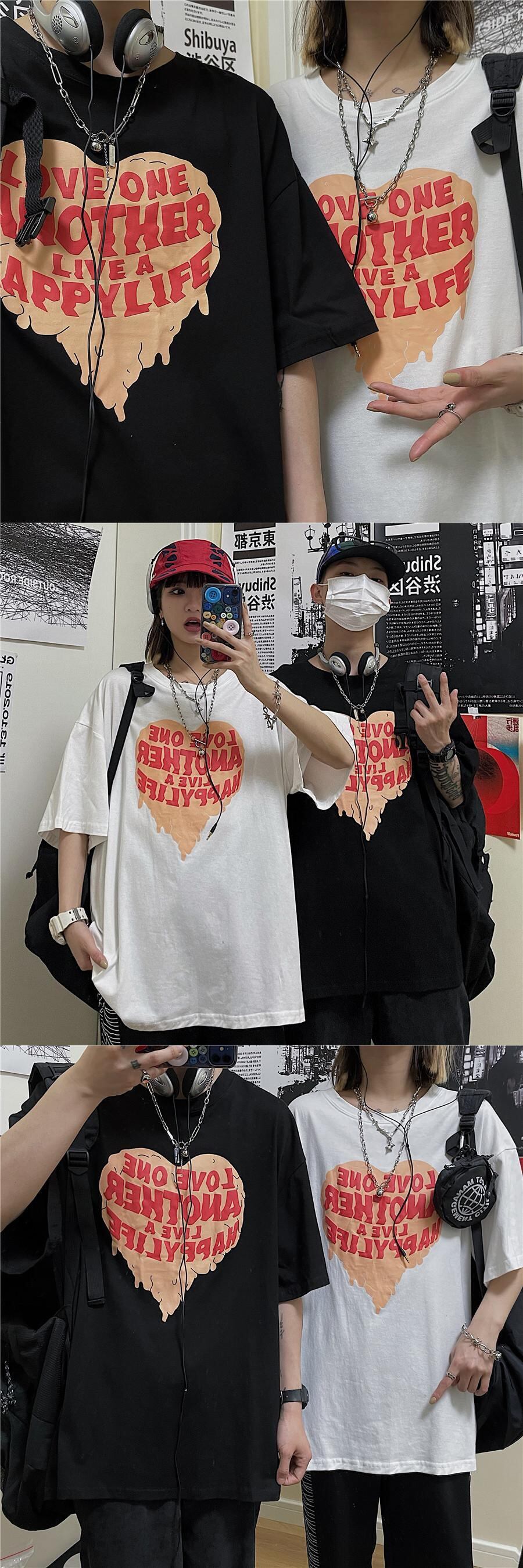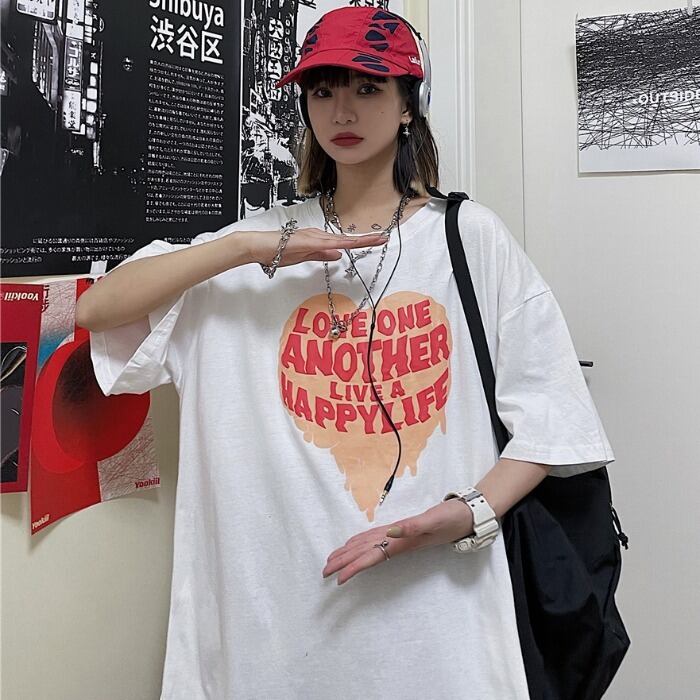 Tシャツレディース夏服韓国ファッショントレンドスタイルプリントルーズトップス 原宿 夏物 ボーイズ コーデ モノクロ Studio42275270124