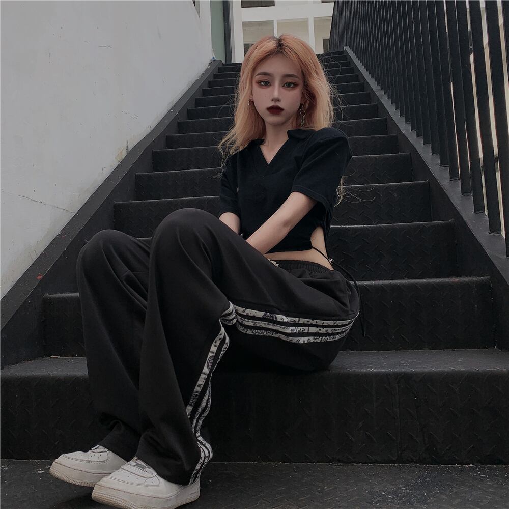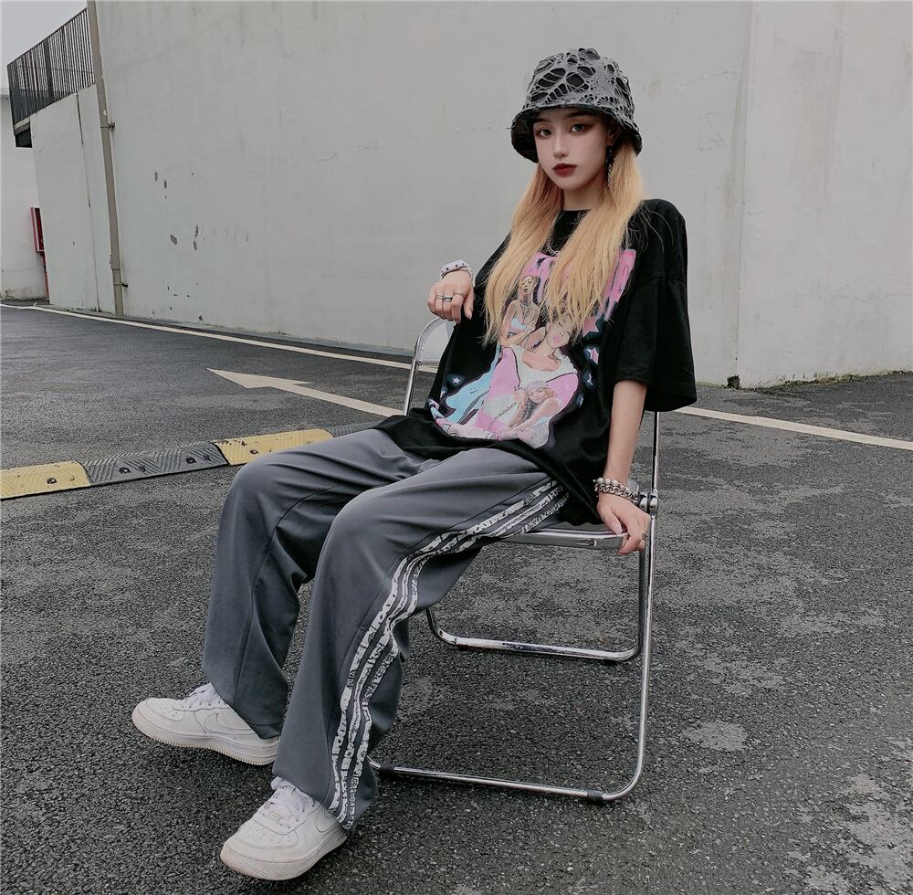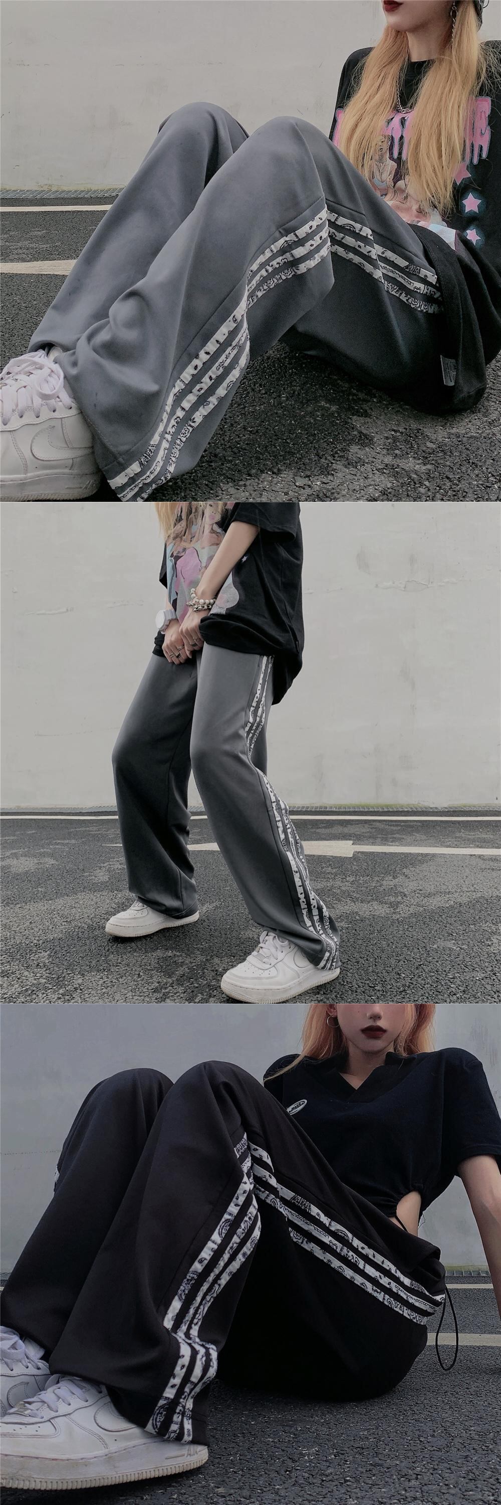 スタンダード夏服パンツ レディース韓国ファッションFlowerデザイン ルーズ レトロ 夏物 フラワーデザイン スタイル コーデ モノクロ Studio59471547527