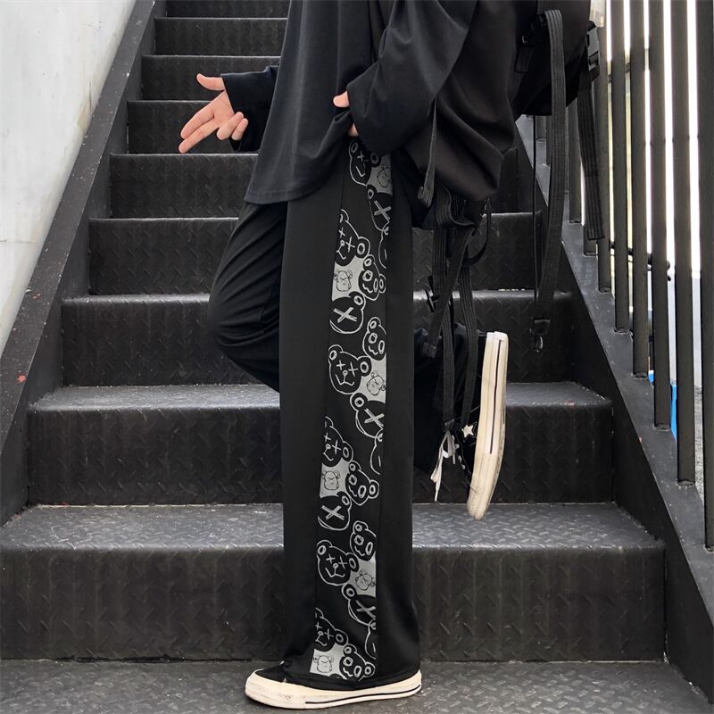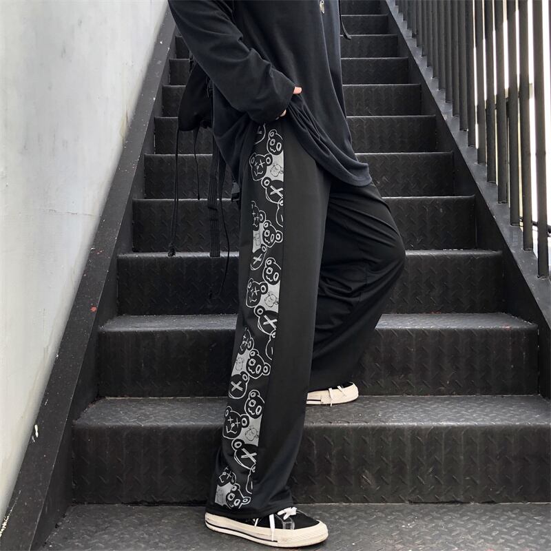 ワイドレッグカジュアルパンツ レディース夏服韓国ファッショントレンドダークプリント柄ルーズ ストリート 夏物 ワイドパンツ スタイル Studios75331195019 | pLegLad Studios