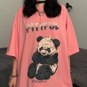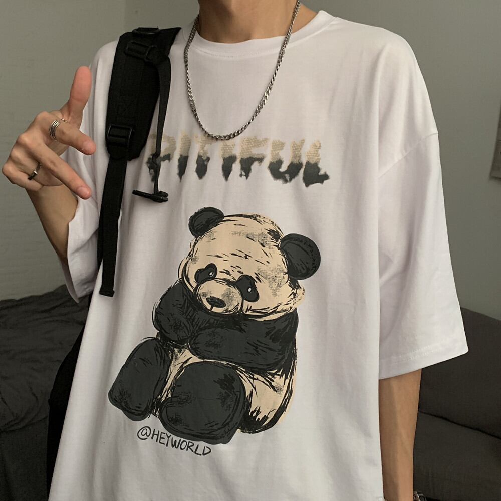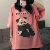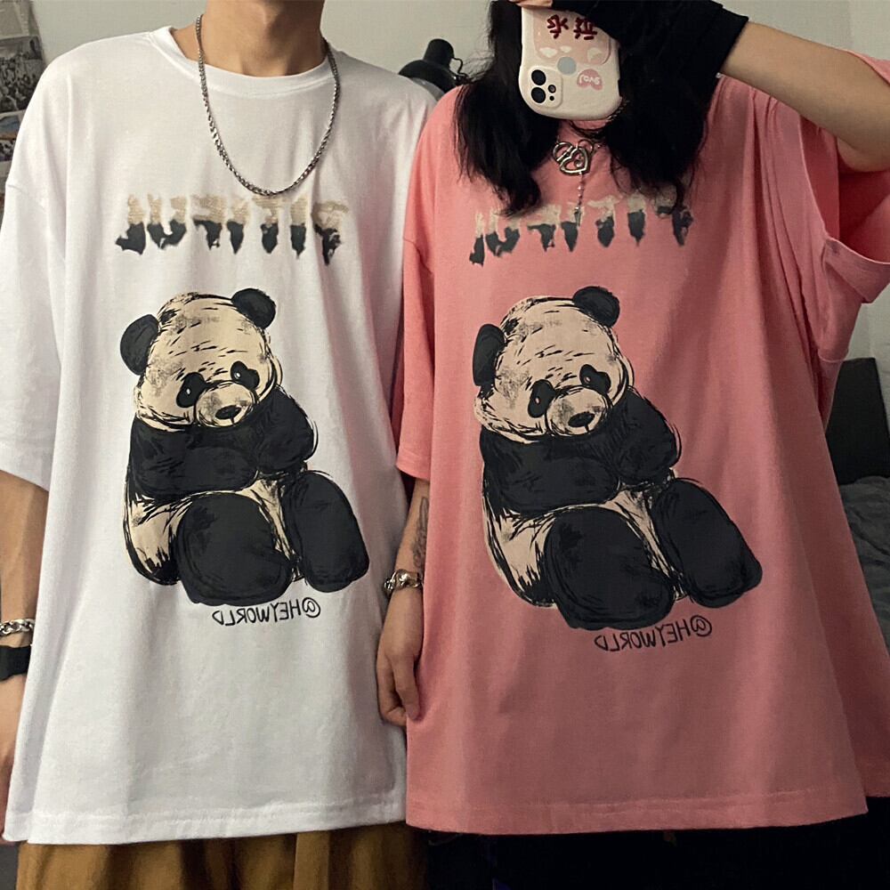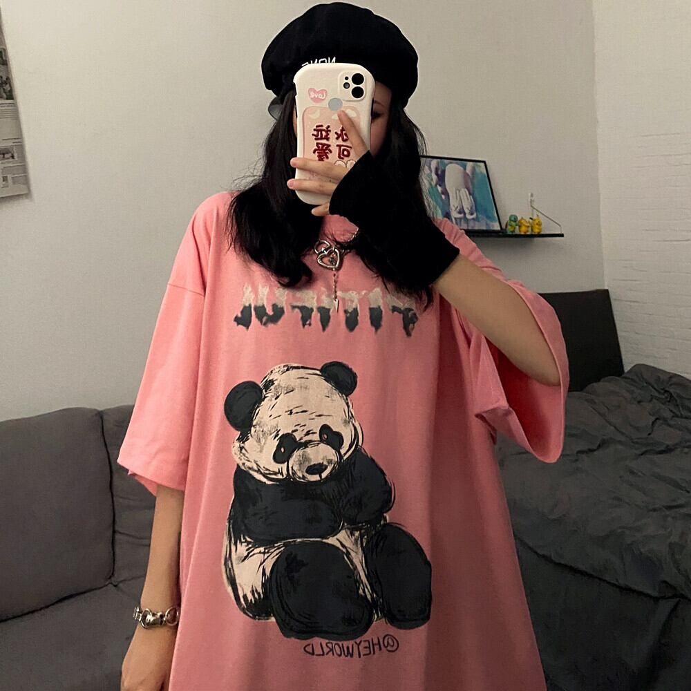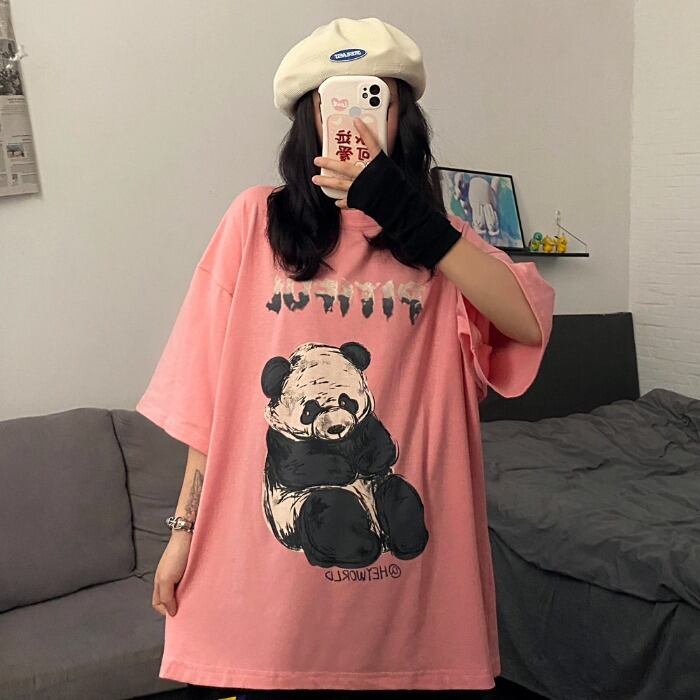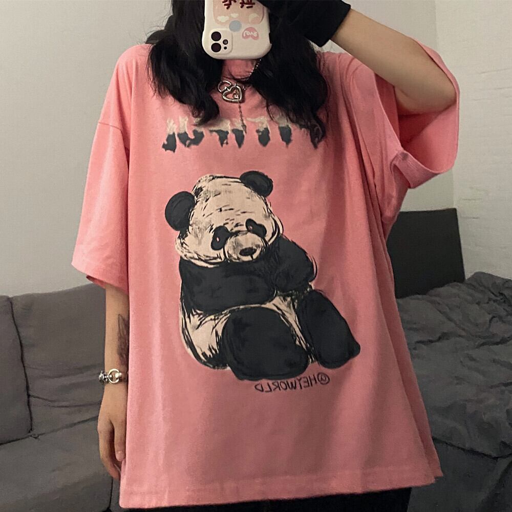 Tシャツシャツ レディース夏服韓国ファッショントレンドレッドプリント柄ルーズカジュアルゆったり 夏物 スタイル コーデ モノクロ Studio19189229040
