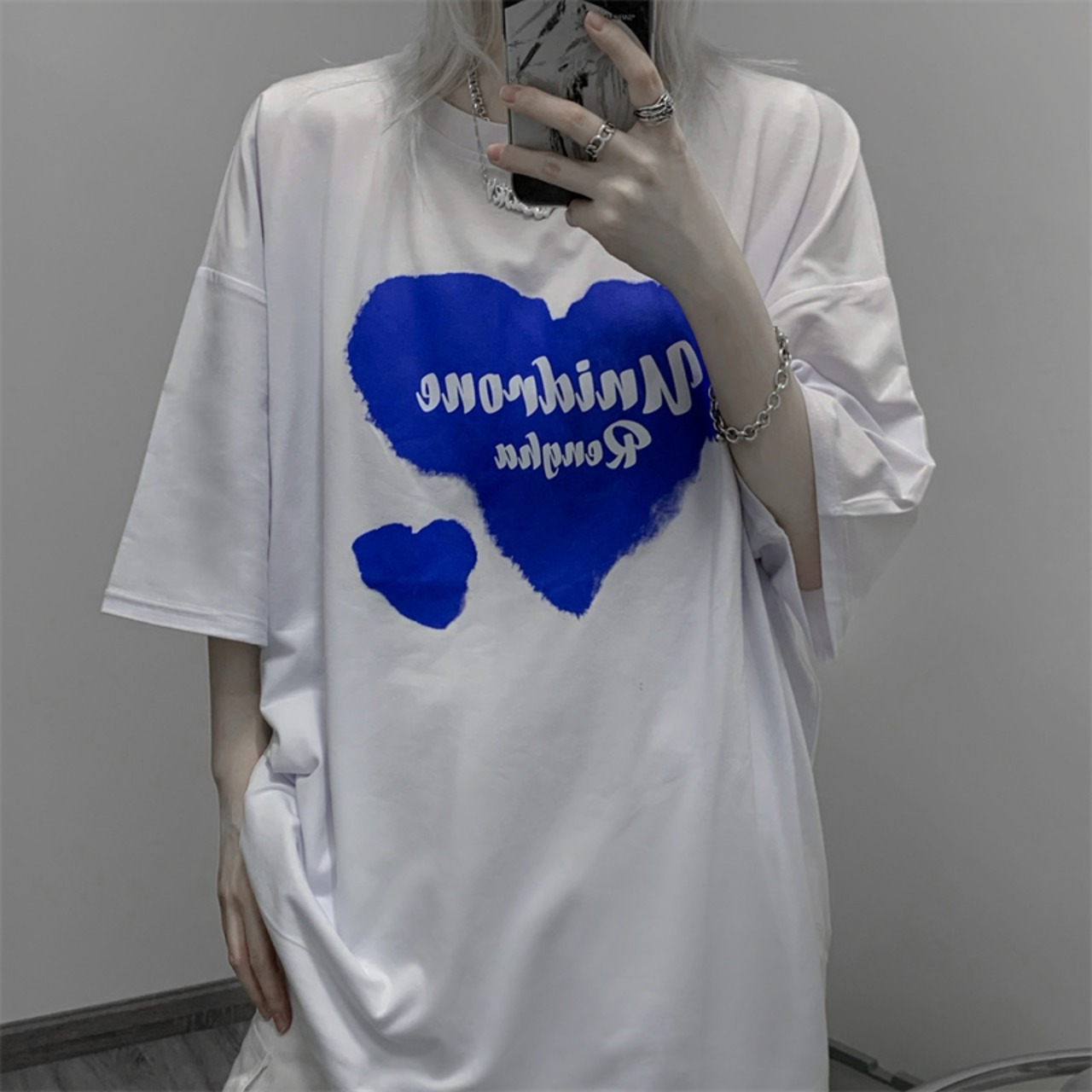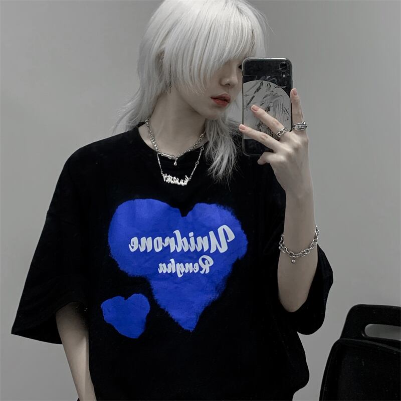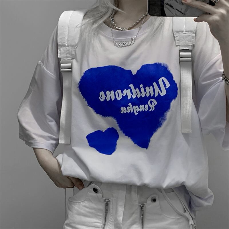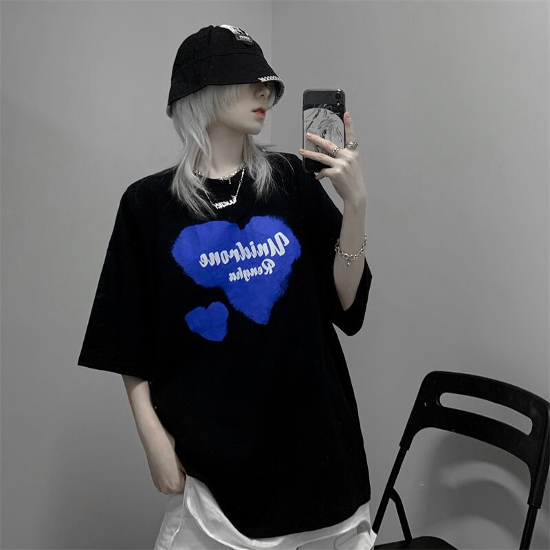 カジュアルゆったりシャツ レディース夏服韓国ファッショントレンドプリントルーズTシャツ 夏物 スタイル コーデ モノクロ Studio77726361828