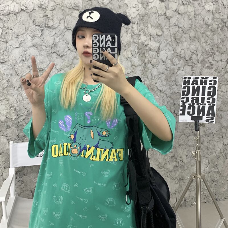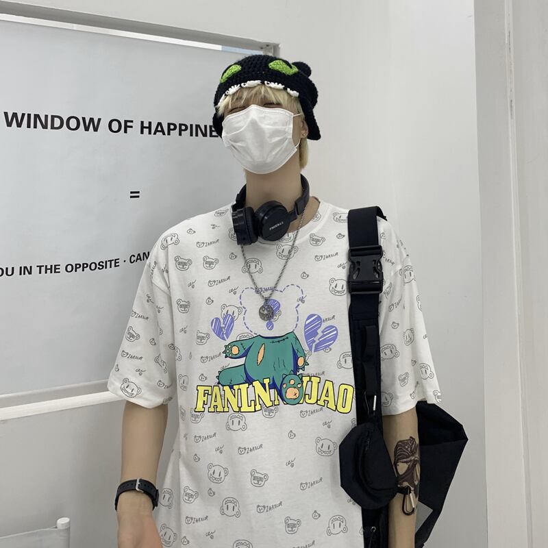 スタンダードTシャツシャツ レディース夏服スタイル韓国ファッショントレンドプリントルーズゆったり レトロ 夏物 コーデ モノクロ Studio83755489507