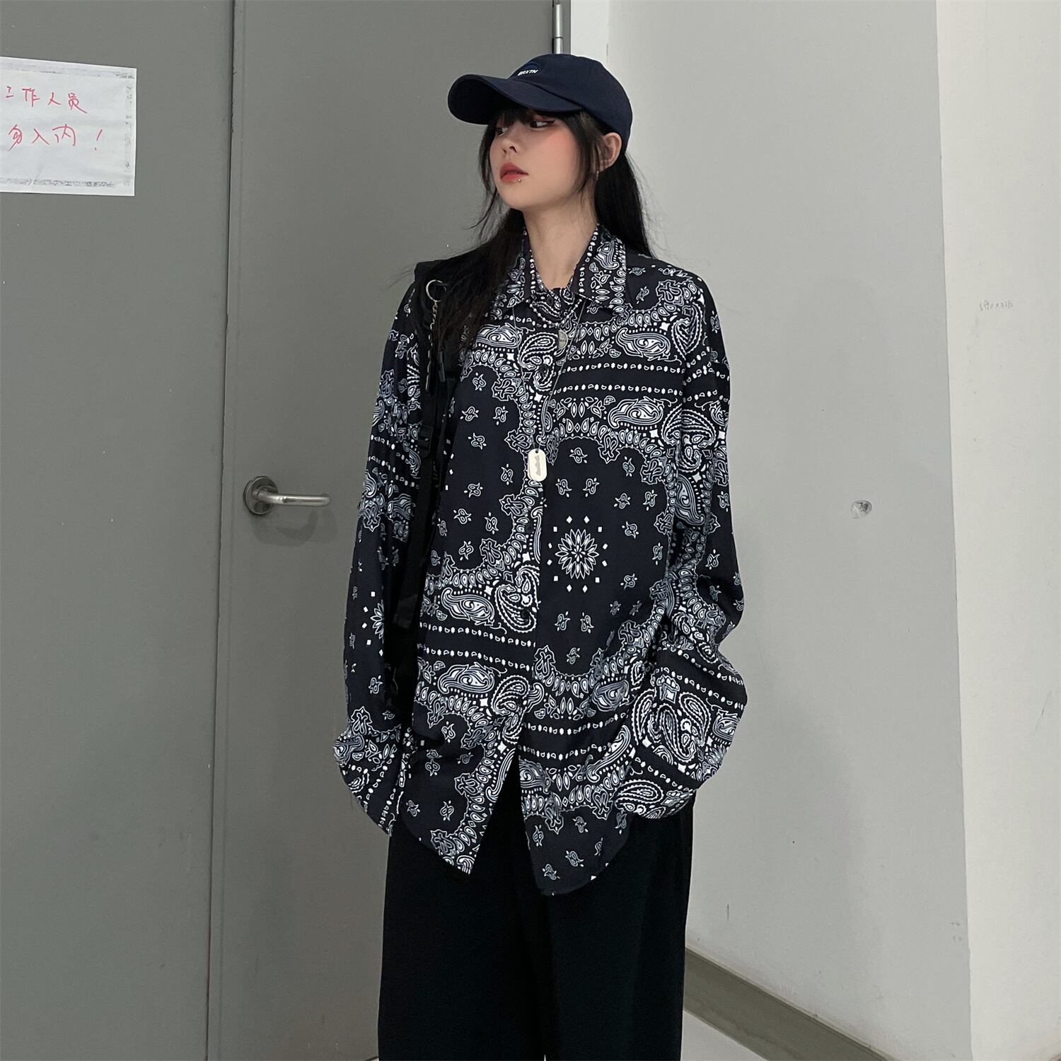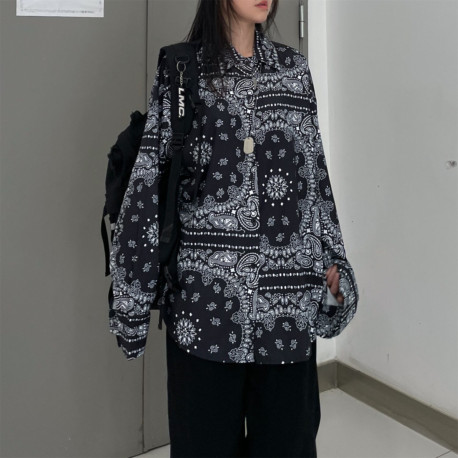 ダークFlowerデザイン ルーズシャツ レディース夏服韓国ファッショントレンド ロング 夏物 フラワーデザイン 長袖 コーデ モノクロ Studio78896453030