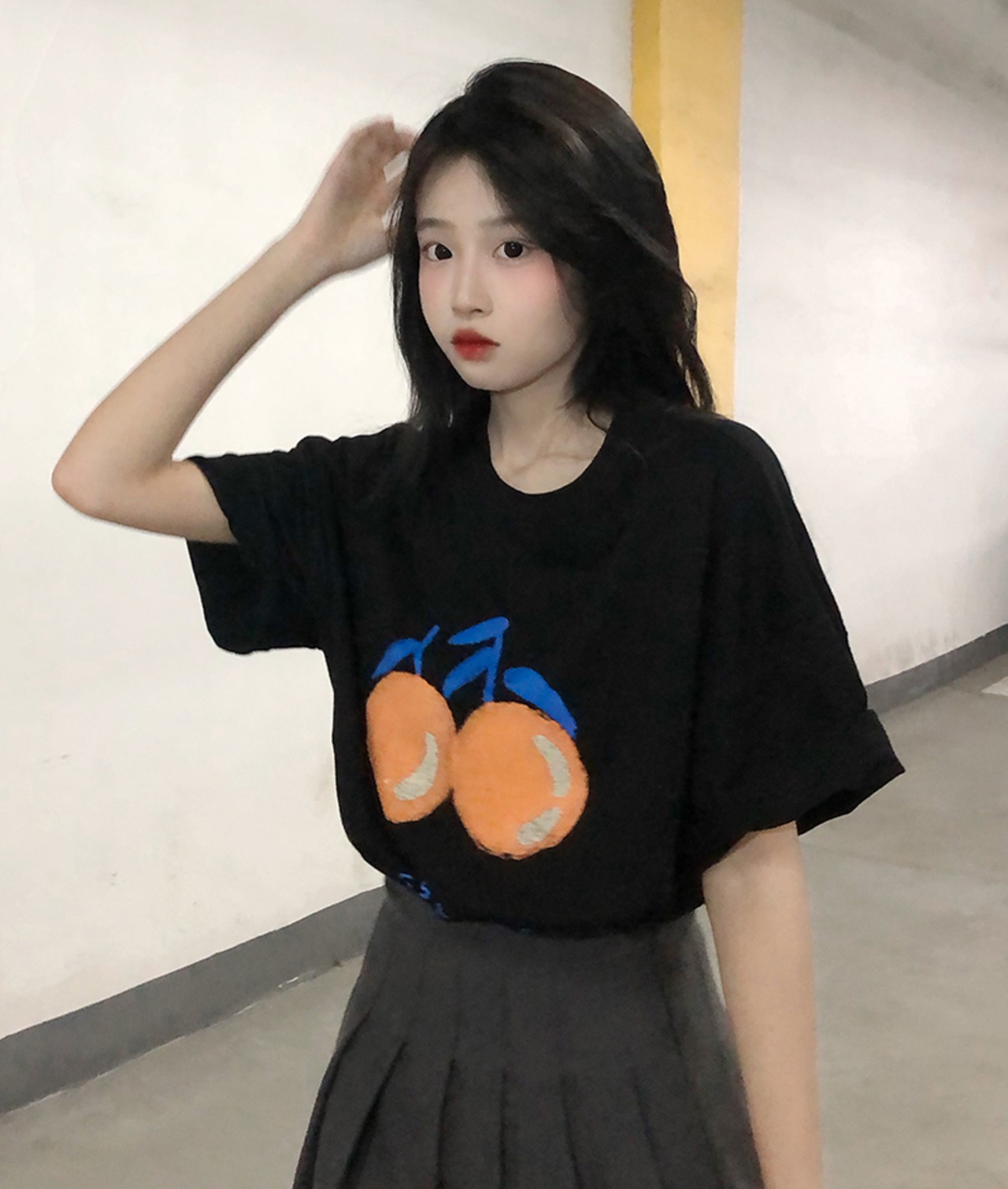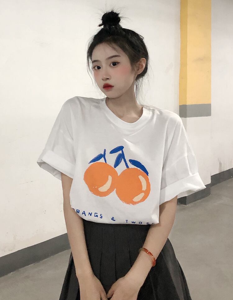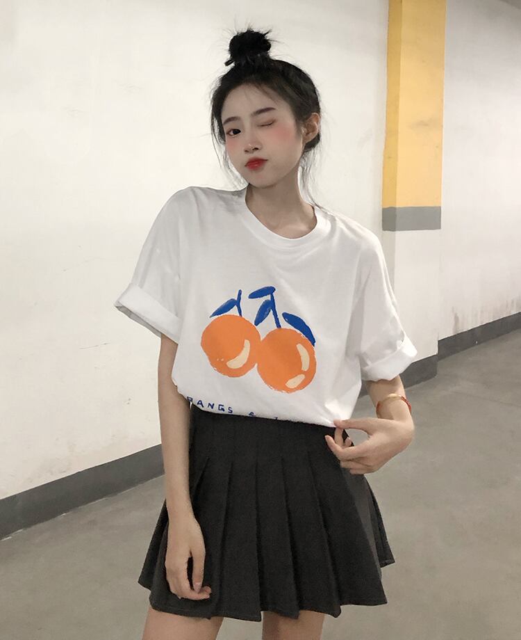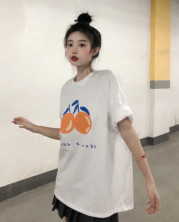 色:ホワイトビッグオレンジTシャツ,黒の大きなオレンジ色のTシャツ