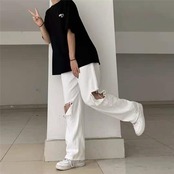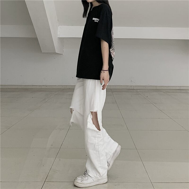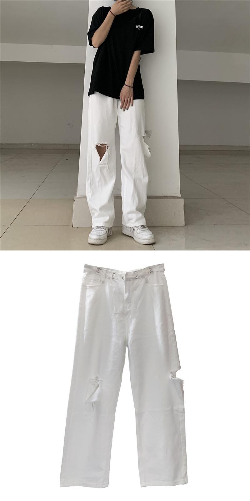ジーンズ レディース夏服韓国ファッショントレンドホワイトルーズハイウェストウェスト薄手ワイドレッグカジュアルパンツ 夏物 ワイドパンツ スタイル ウエスト Studios77680707417 | pLegLad Studios