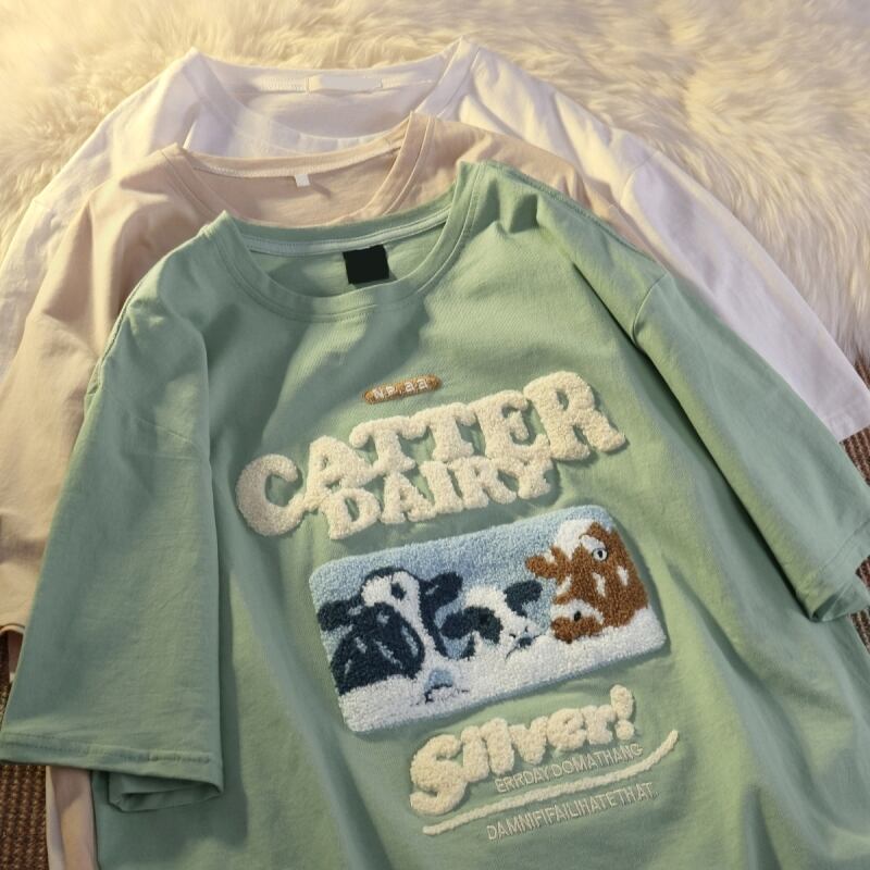 夏服Tシャツレディース韓国ファッショントレンドスタンダードパターンルーズトップス レッド レトロ 刺繍 夏物 ボーイズ スタイル コーデ モノクロ Studio4739043948 | pLegLad Studios