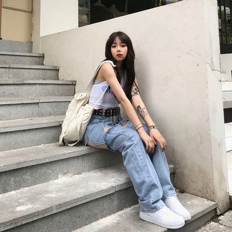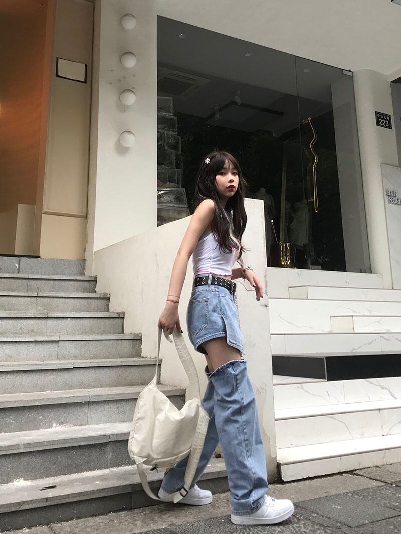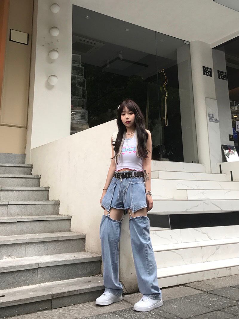 ジーンズ レディース夏服韓国ファッショントレンドルーズハイウェストウェストワイドレッグ ストリート 夏物 ワイドパンツ スタイル ウエスト Studios97374382907 | pLegLad Studios