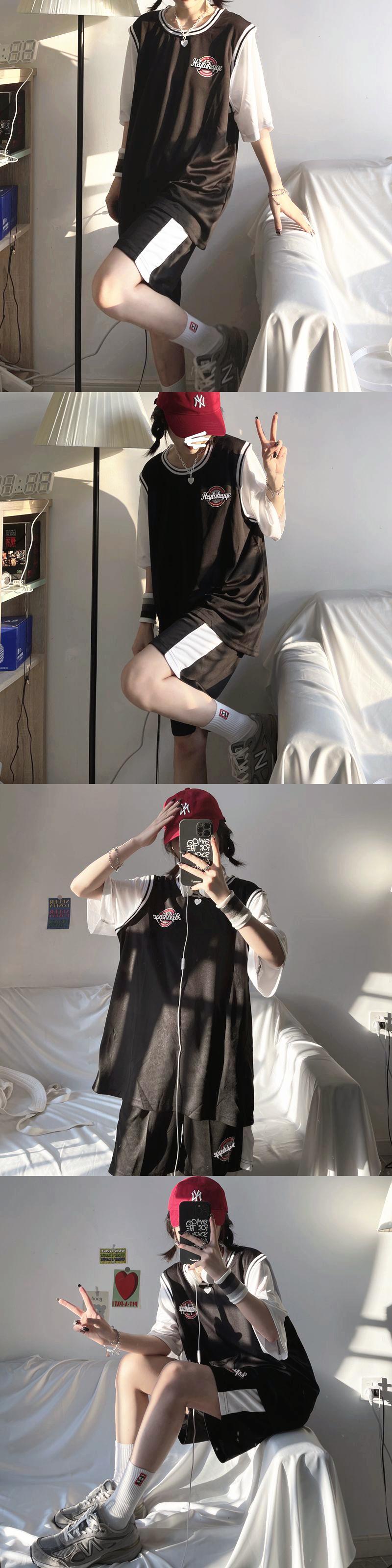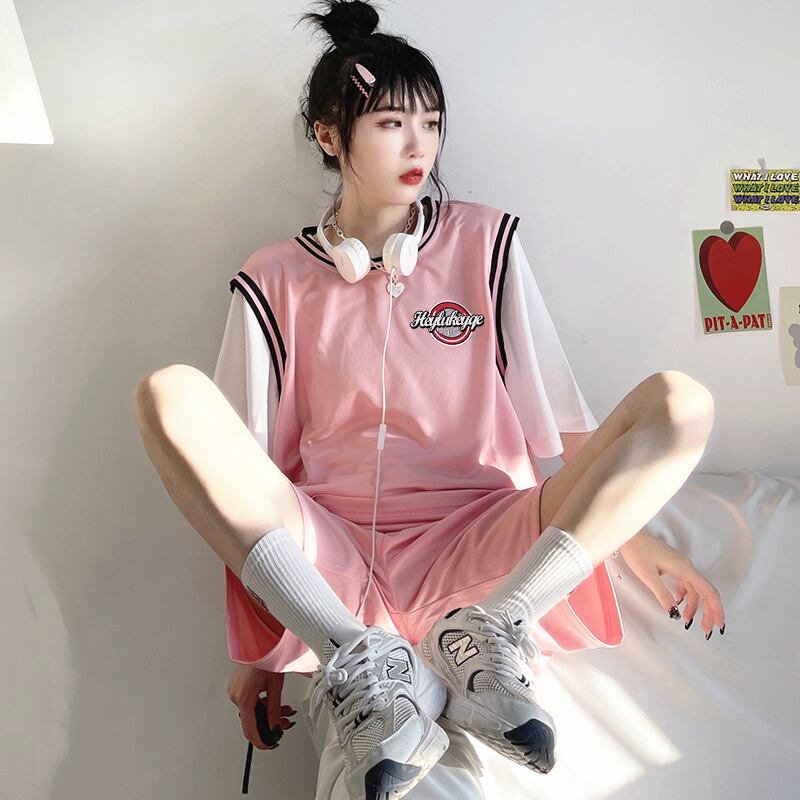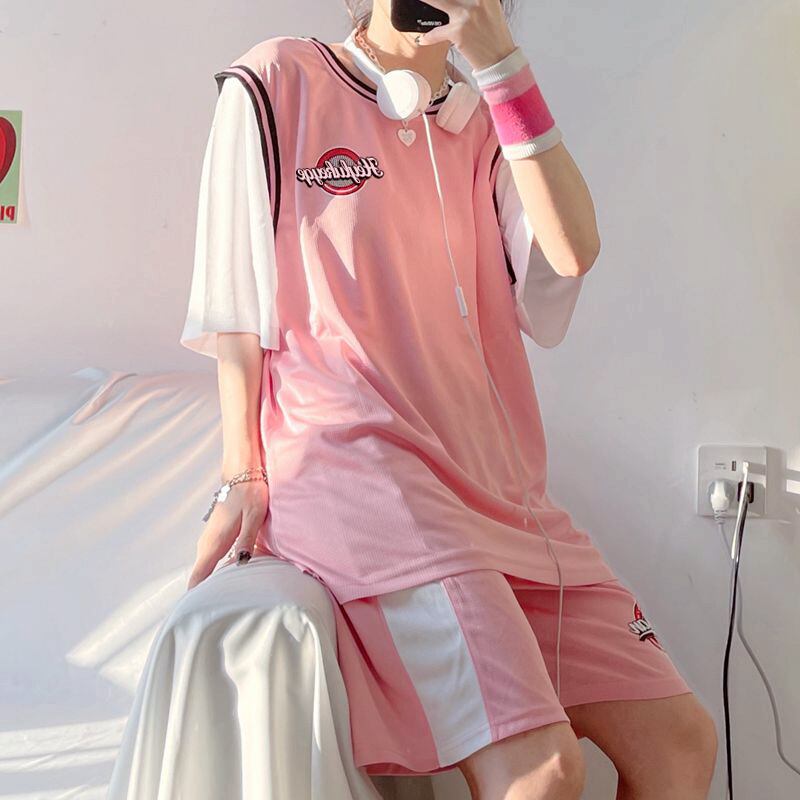 トップス Tシャツレディース夏服韓国ファッショントレンドスタイルショーツ ピンク 原宿 夏物 ステッチ コーデ モノクロ Studio59502271095