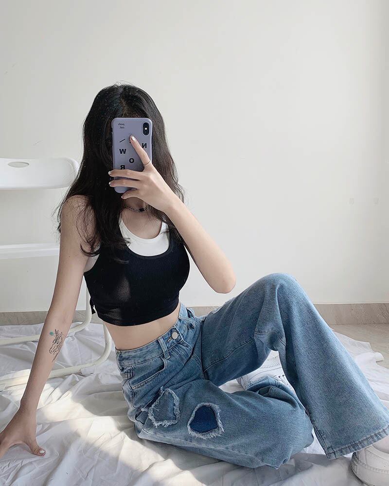 韓国ファッションジーンズ レディース夏服トレンド薄手パンツ 夏物 ステッチ ボーイズ スタイル コーデ モノクロ Studio70133593280