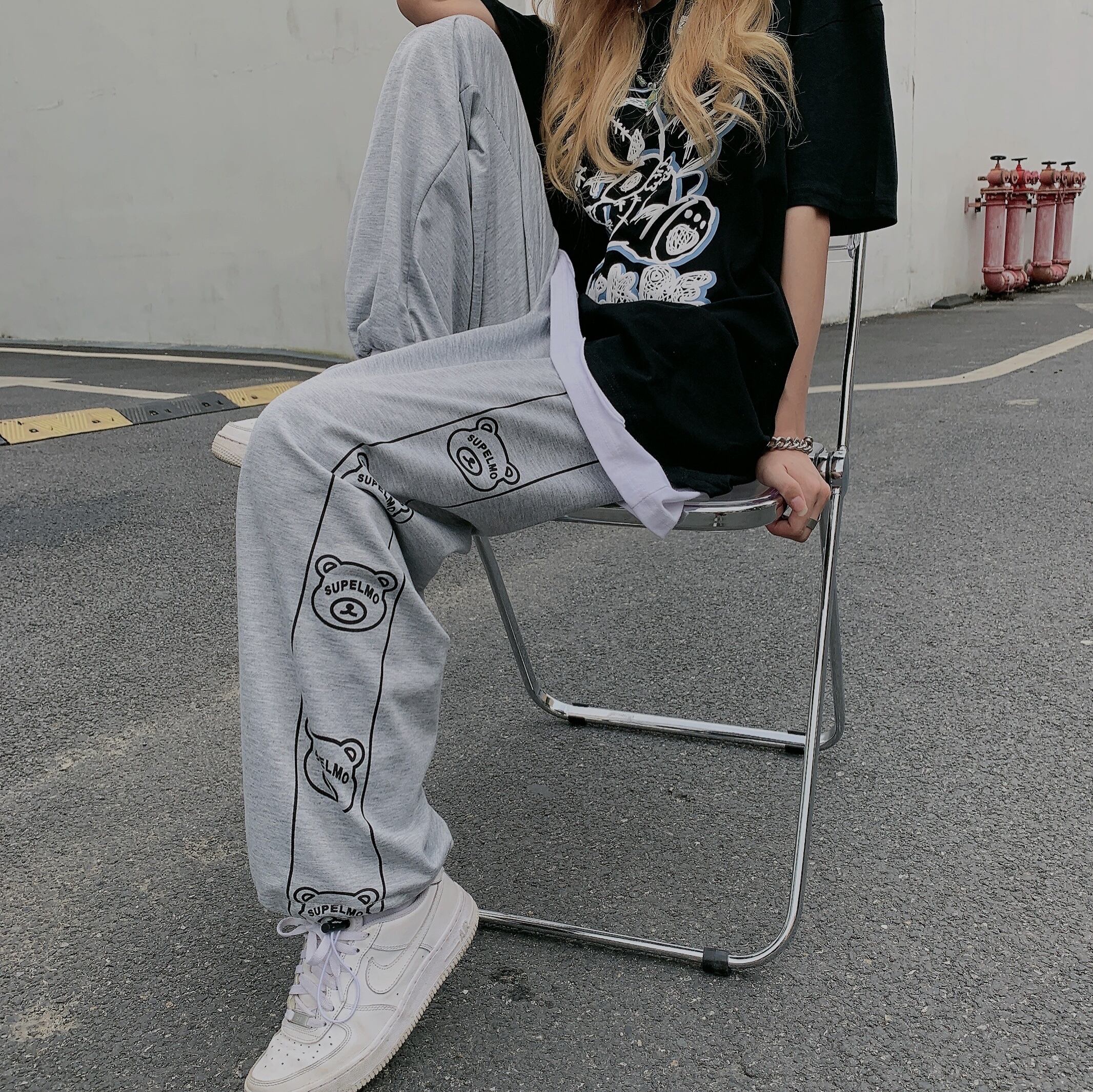 ギャザーカジュアルパンツ レディース夏服韓国ファッショントレンドスタンダードプリント柄ハイウェストウェストルーズワイドレッグ レトロ 夏物 ワイドパンツ スタイル ウエスト Studios86908284655 | pLegLad Studios