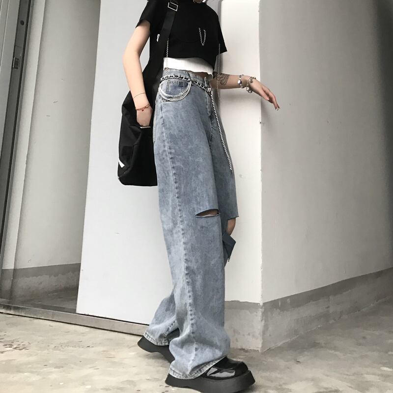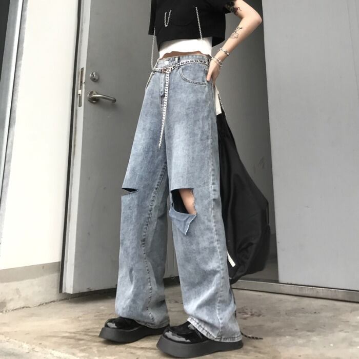 夏服韓国ファッショントレンドカジュアルジーンズ パンツ 夏物 スタイル コーデ モノクロ Studio54817033028