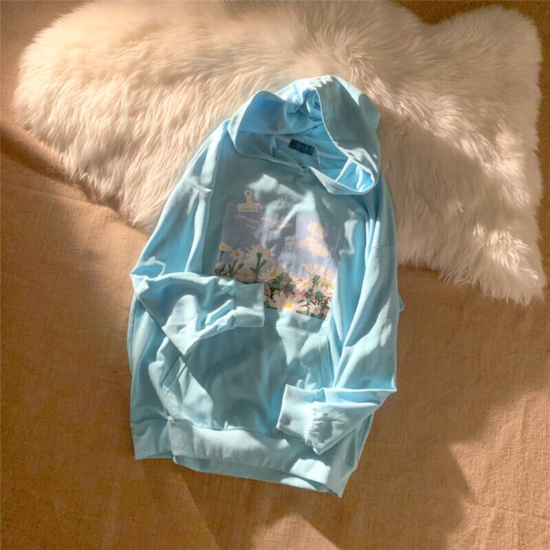フードセーター レディース韓国ファッショントレンドプリントルーズジャケット ロング ボーイズ スタイル 長袖 コーデ モノクロ Studio88363713171