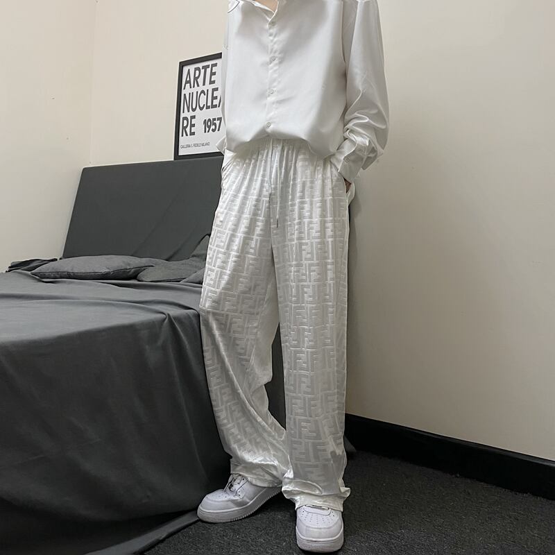 ワイドレッグパンツ レディース韓国ファッショントレンドスタイルジャカードルーズハイウェストウェスト薄手カジュアル 原宿 ワイドパンツ ウエスト Studios36047003765 | pLegLad Studios