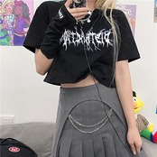 夏服韓国ファッショントレンドプリント柄ショートトップス ルーズTシャツ 夏物 スタイル コーデ モノクロ Studio80369412196