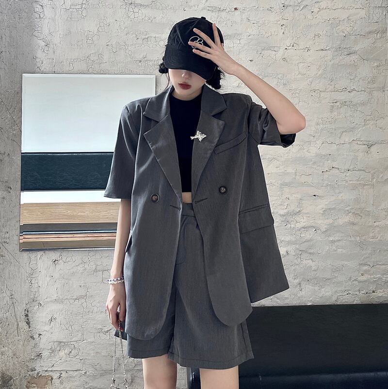 夏服薄手ジャケット レディース韓国ファッションスタイルハイウェストウェストスリムショーツ 夏物 ウエスト コーデ モノクロ Studio18437866995