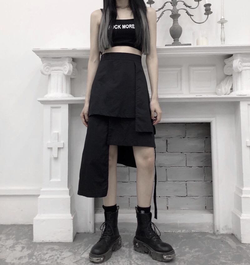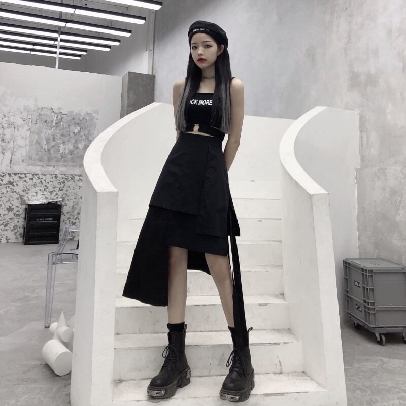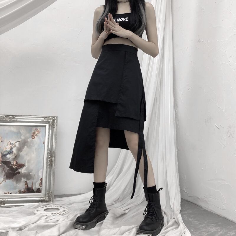 スカート レディース夏服韓国ファッショントレンドスタンダードブラックハイウェスト薄手 レトロ 夏物 スタイル ウエスト ミドル丈 Studios48506493087 | pLegLad Studios