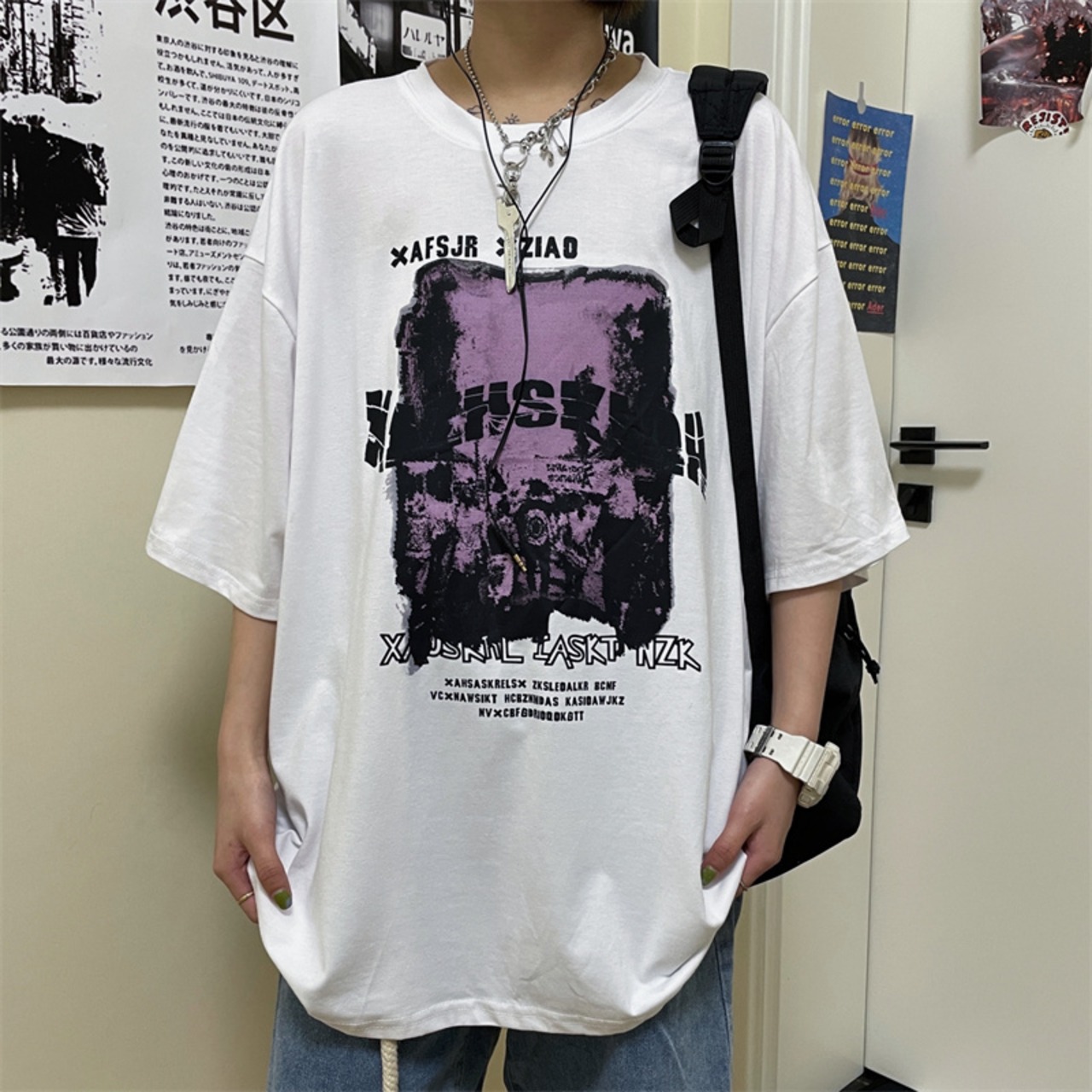 韓国ファッションTシャツ夏服トレンドダークブラックプリントルーズカジュアルトップス 夏物 コーデ モノクロ Studio13020790225