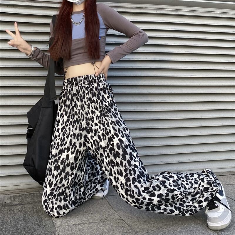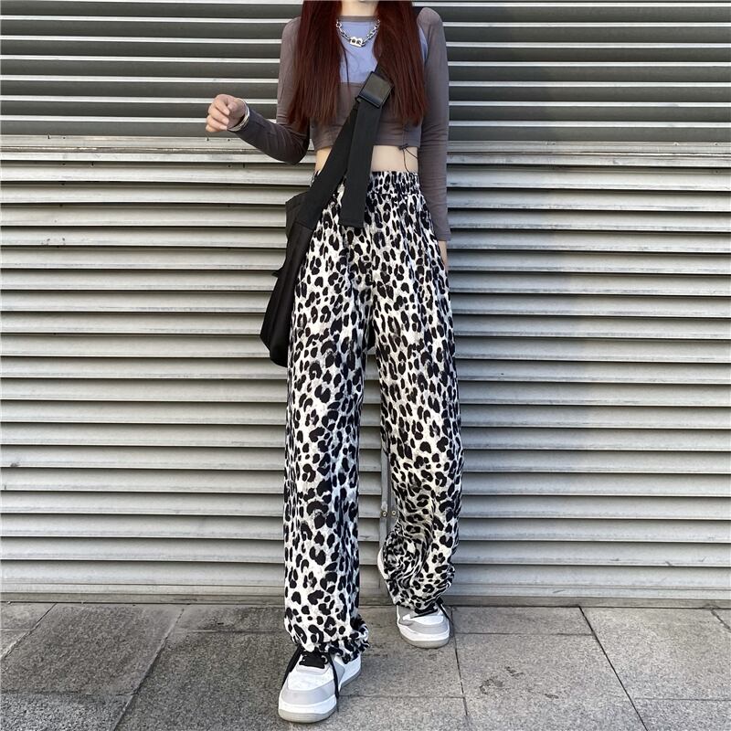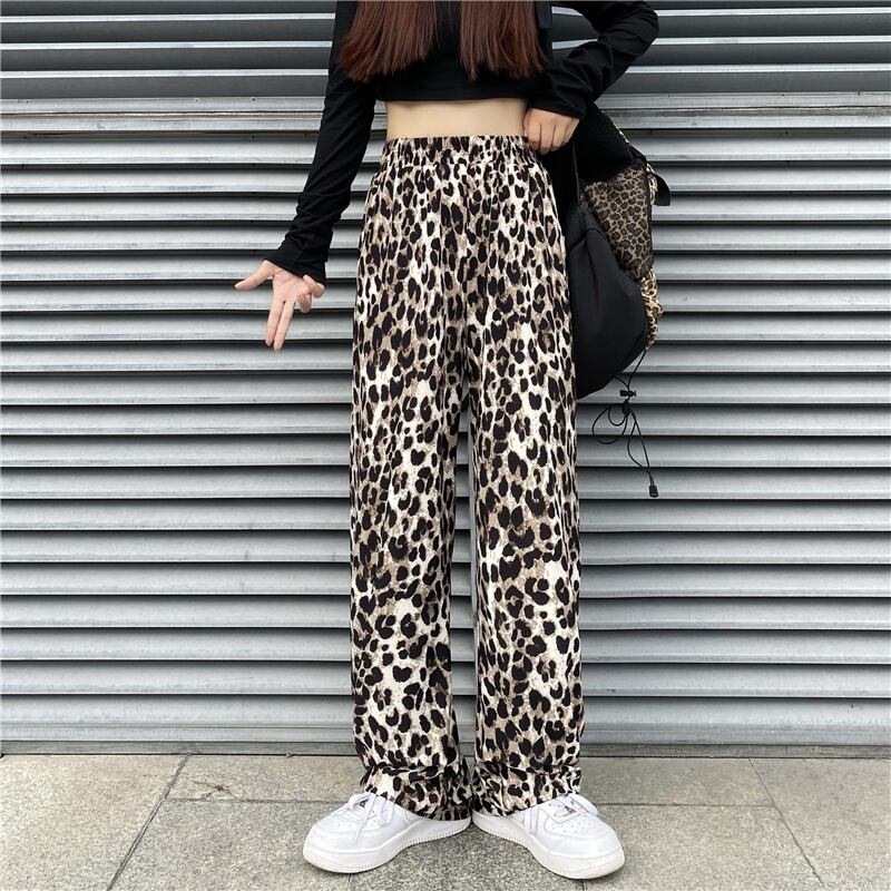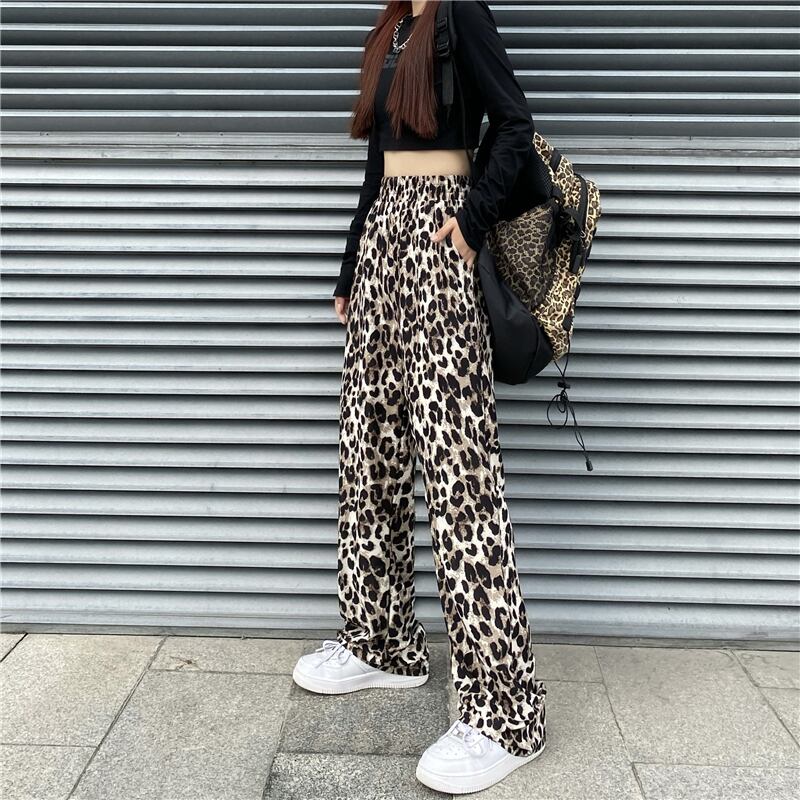 カジュアルパンツ レディース夏服韓国ファッショントレンドハイウェストウェストレオパードプリント柄ルーズ薄手ワイドレッグ ストリート 夏物 ワイドパンツ スタイル ウエスト Studios16976633072 | pLegLad Studios
