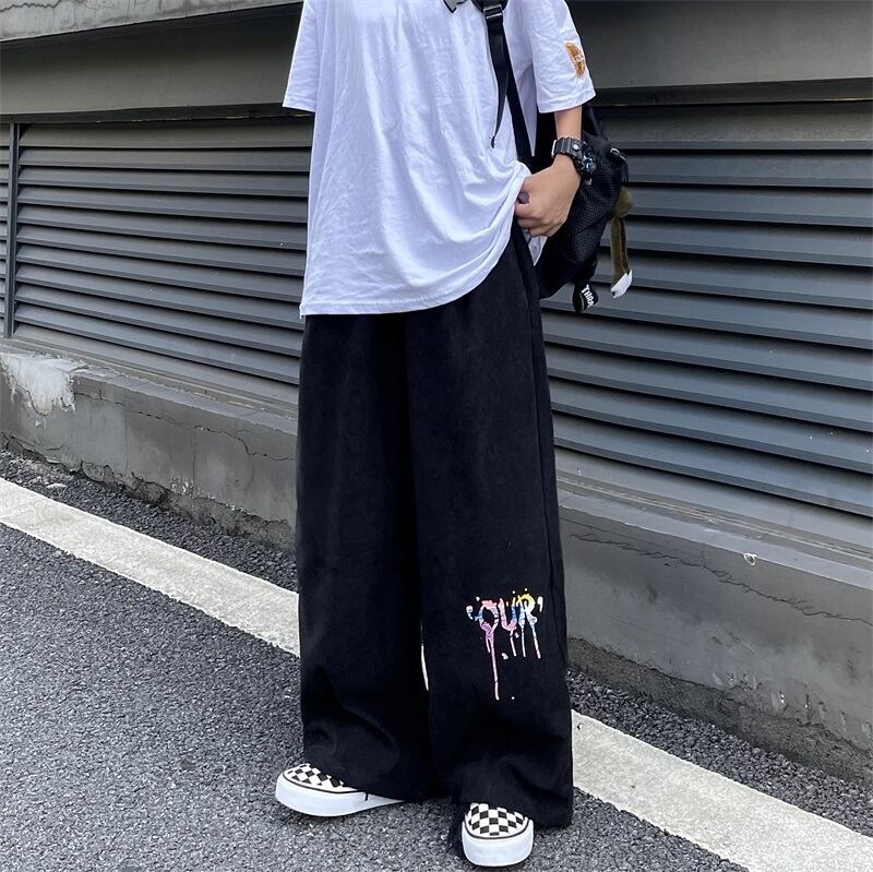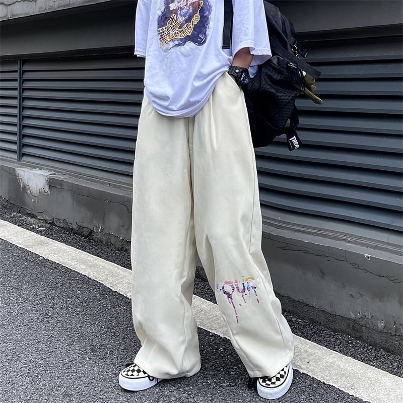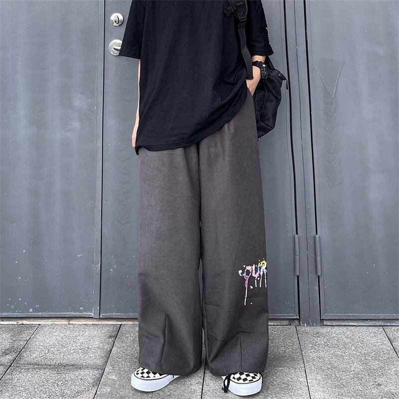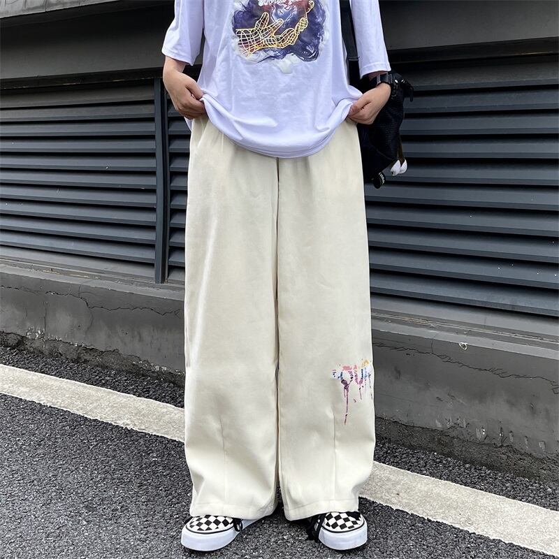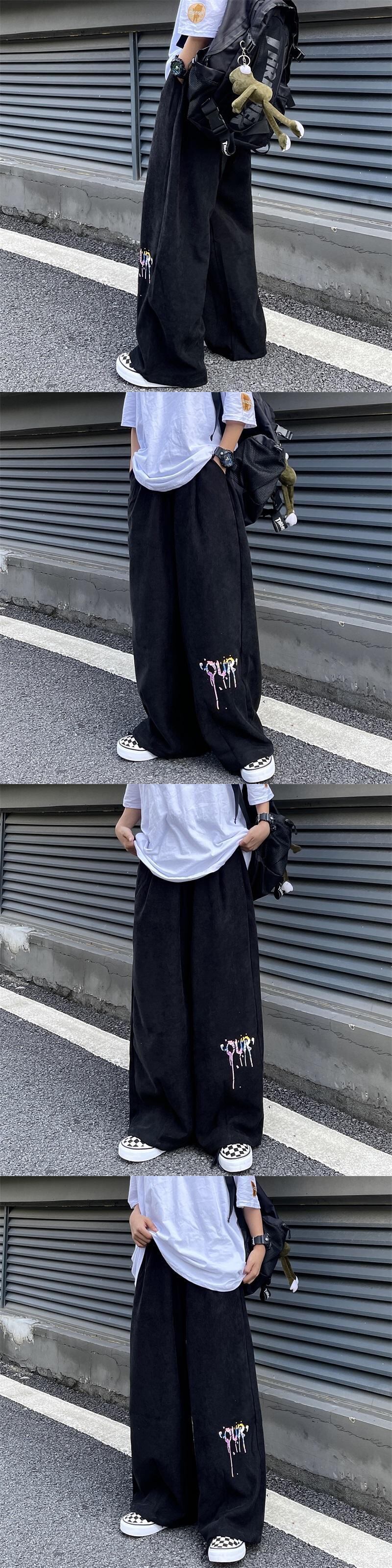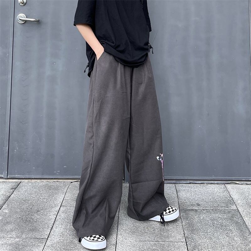 ワイドレッグカジュアルパンツ レディース韓国ファッショントレンドスタンダードプリントルーズ薄手 レトロ ワイドパンツ ボーイズ スタイル Studios32009844892 | pLegLad Studios