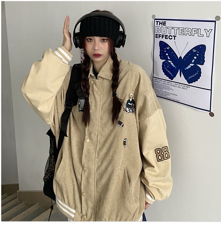 コーデュロイジャケット レディーススプリング秋物韓国ファッショントレンドスタンダード刺繍ルーズカジュアル レトロ 春物 オータム スタイル Studios18610343631 | pLegLad Studios