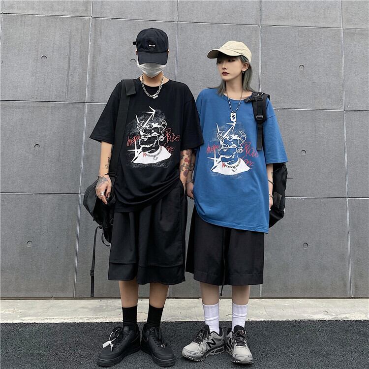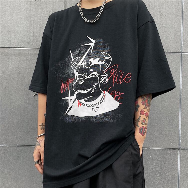 Tシャツシャツ レディース夏服韓国ファッショントレンドスタンダードプリントルーズラウンドネック レトロ 夏物 Oネック スタイル コーデ モノクロ Studio87516243726