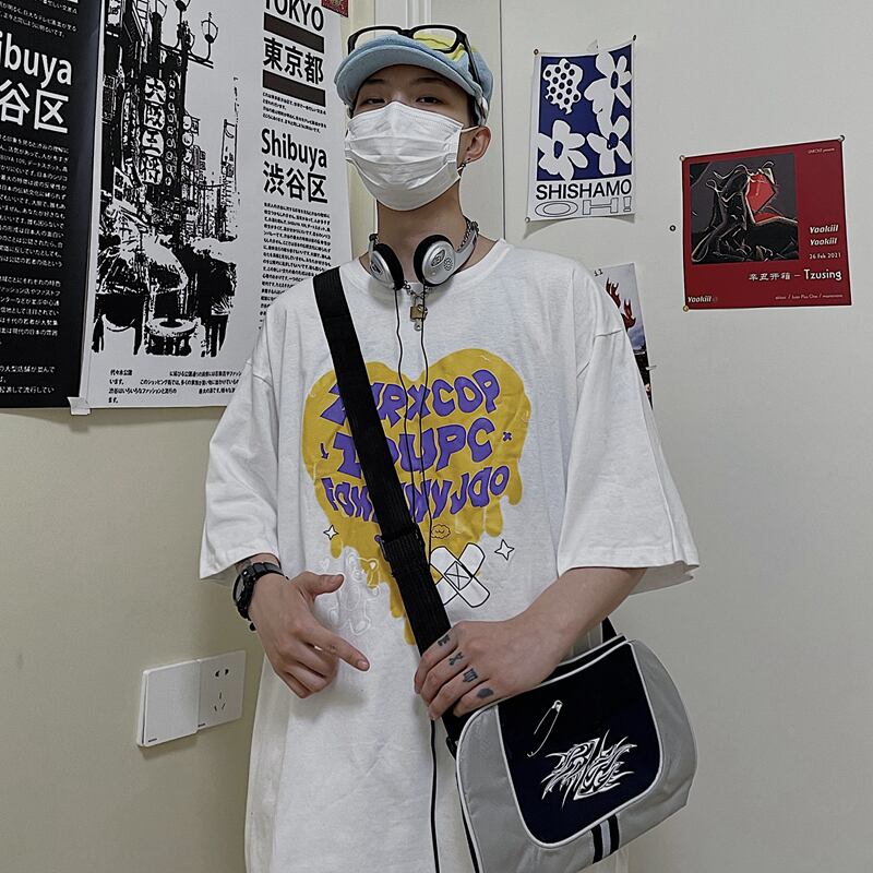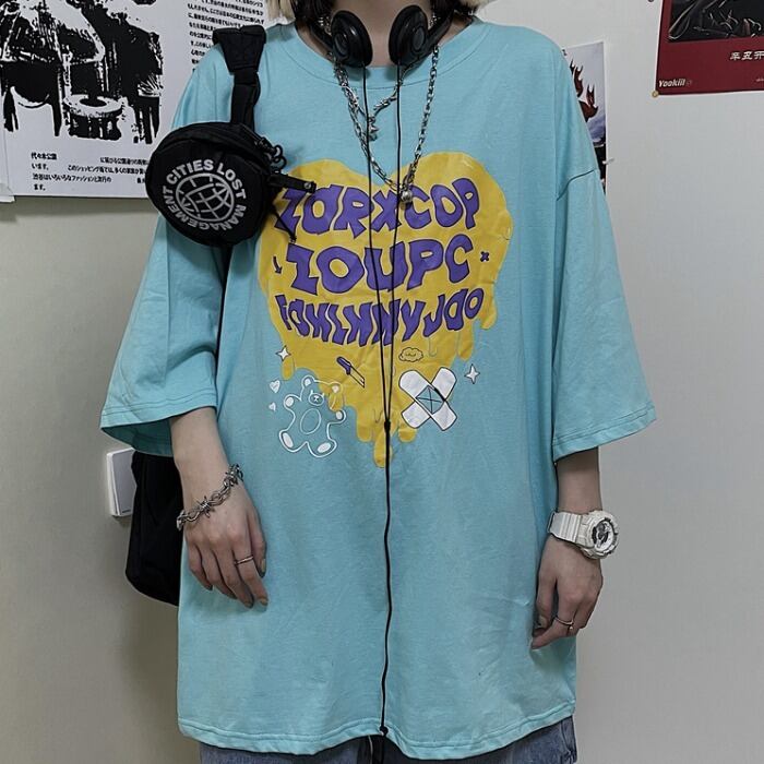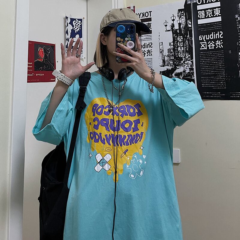 カジュアルTシャツレディース夏服韓国ファッショントレンドスタンダードプリントトップス レトロ 夏物 スタイル コーデ モノクロ Studio563324108