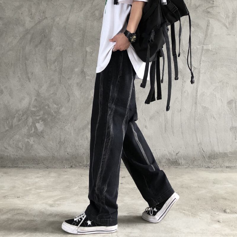 スタンダードルーズパンツ 夏服スタイル韓国ファッションハイウェストジーンズ レトロ 夏物 ボーイズ ウエスト コーデ モノクロ Studio54215349754