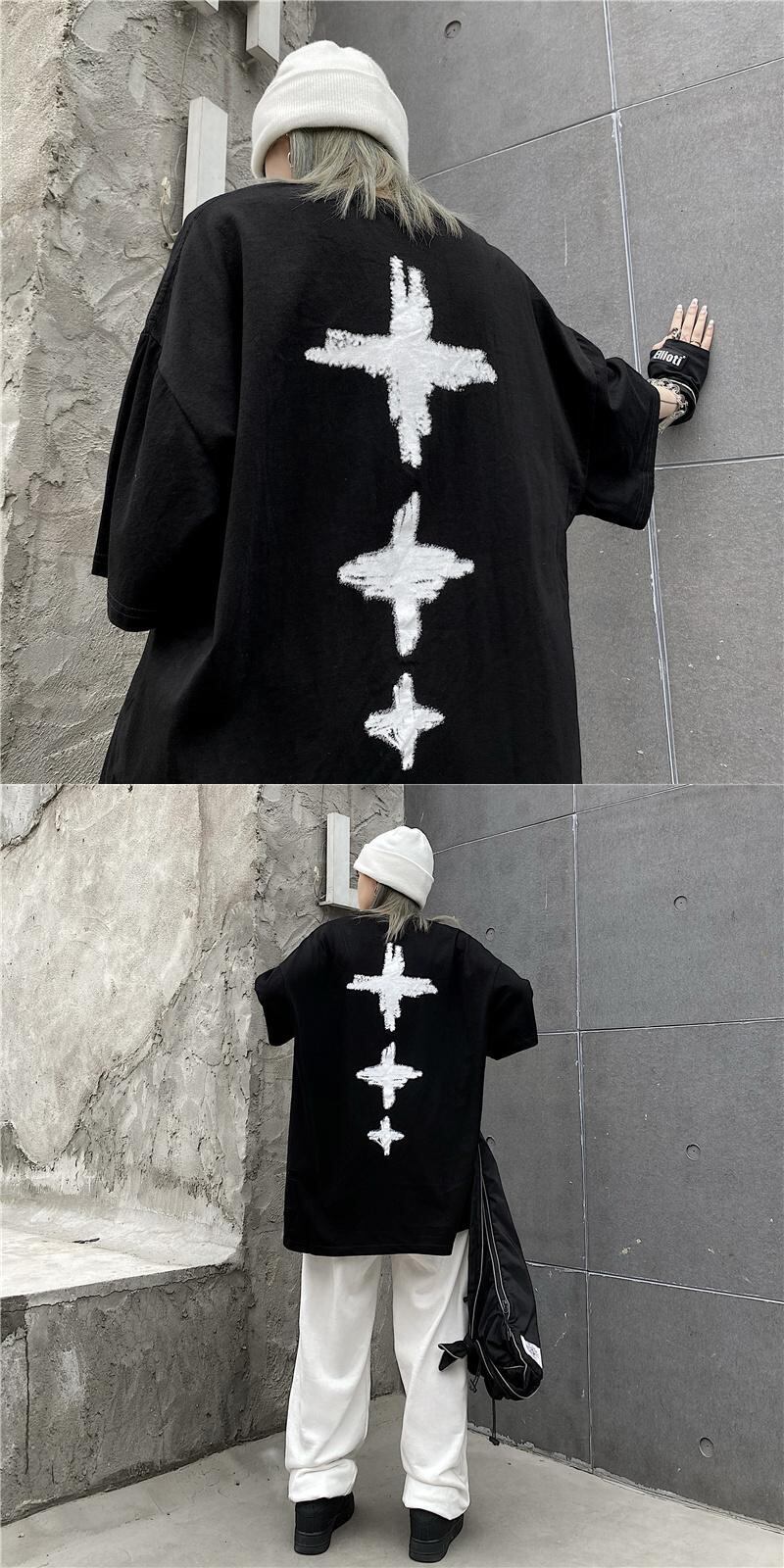 プリント柄ブラックブラウス レディース夏服韓国ファッショントレンドスタンダードTシャツ レトロ 夏物 スタイル コーデ モノクロ Studio8133989830