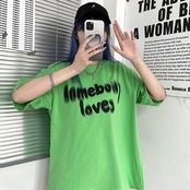 スタンダードグリーンTシャツレディース夏服韓国ファッショントレンドスタイルトップス レトロ 原宿 夏物 ボーイズ コーデ モノクロ Studio37620319709
